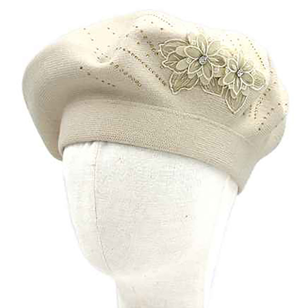 Floral Applique Accent Winter Beret Hat Floral Applique Accent Winter Beret Hat Floral Applique Accent Winter Beret Hat