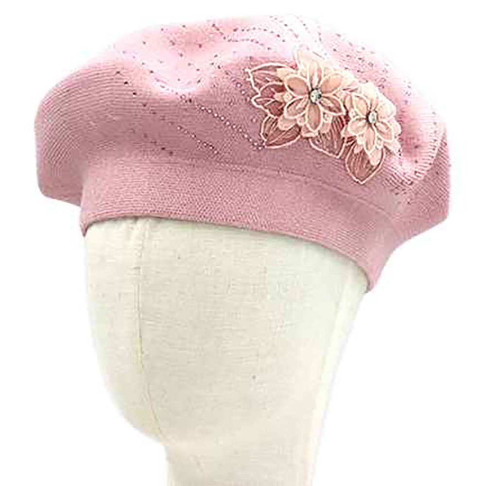 Floral Applique Accent Winter Beret Hat Floral Applique Accent Winter Beret Hat Floral Applique Accent Winter Beret Hat