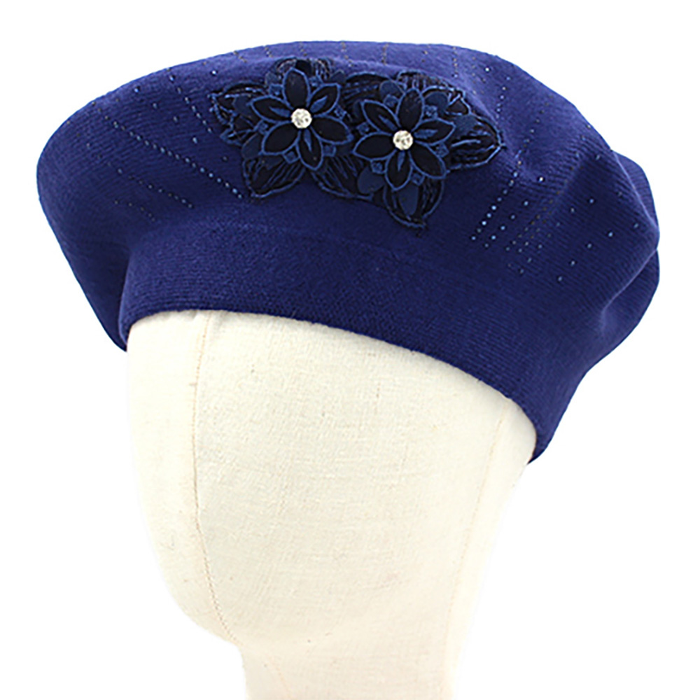 Floral Applique Accent Winter Beret Hat Floral Applique Accent Winter Beret Hat Floral Applique Accent Winter Beret Hat