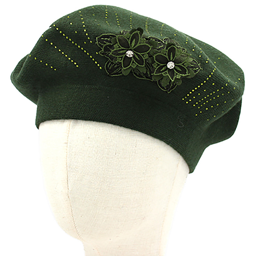 Floral Applique Accent Winter Beret Hat Floral Applique Accent Winter Beret Hat Floral Applique Accent Winter Beret Hat