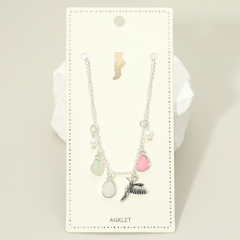 Bird Sea Glass Pearl Charm Station Anklet Bird Sea Glass Pearl Charm Station Anklet Bird Sea Glass Pearl Charm Station Anklet