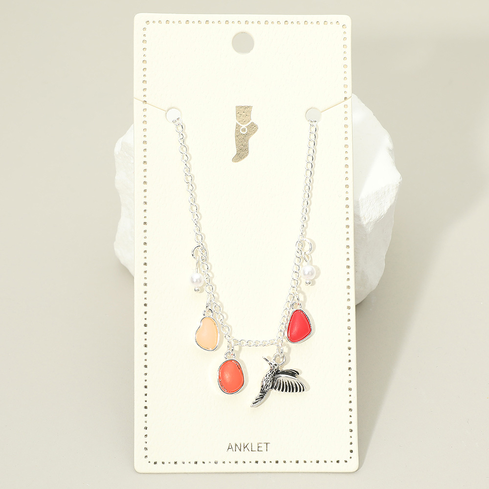 Bird Sea Glass Pearl Charm Station Anklet