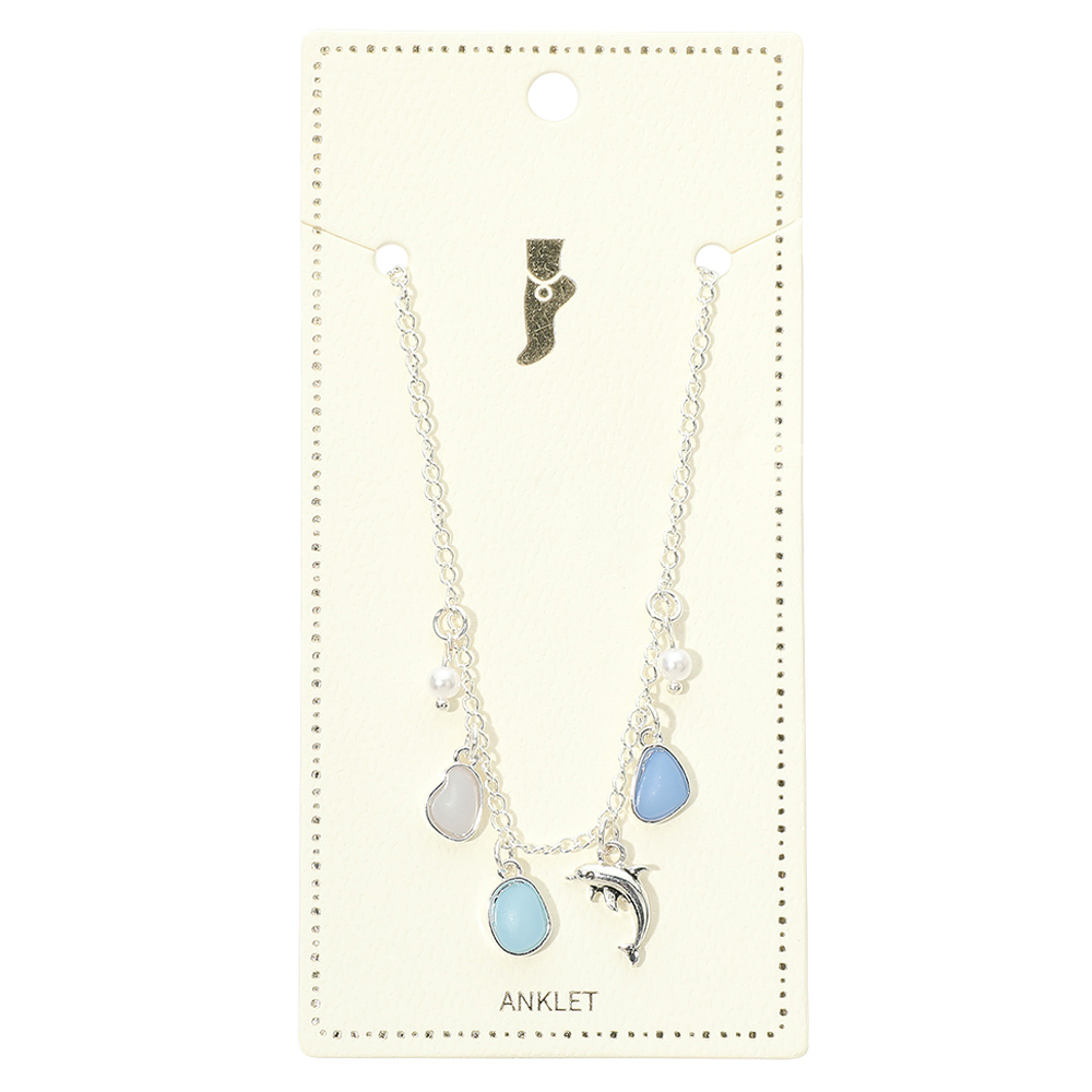 • Dolphin charm anklet featuring delicate dangling accents and a playful marine-inspired silhouette. Designed to add movement and coastal charm to ankle styling for everyday wear or vacation looks. Ideal for gifting or boutique collections focused on beach, ocean, and nature-themed fashion jewelry.