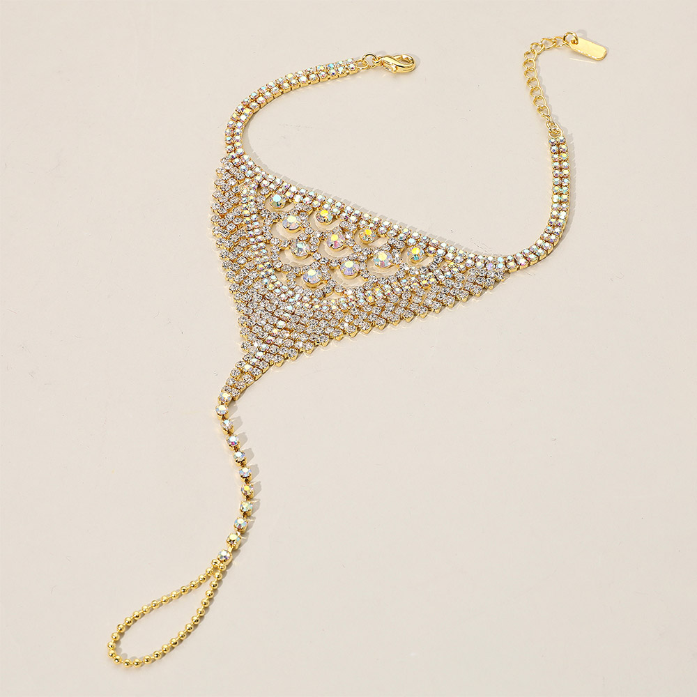 Round Stone Accented Rhinestone Net Toe Ring Evening Anklet
