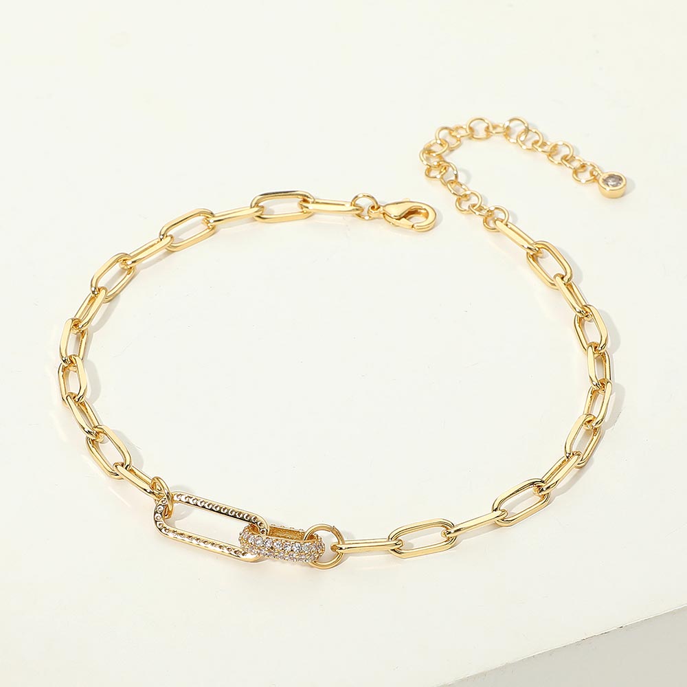Details • Size : 0.3" H, 9" + 2" L • Lobster Clasp Closure • This stylish anklet features a modern paperclip chain design with a sparkling cubic zirconia-accented charm for added shine. Hypoallergenic and gold-dipped for lasting wear, it brings a chic, minimalist touch to summer outfits. Perfect for everyday elegance or layered looks. • Lead and Nickel Compliant • Hypoallergenic • Made In Korea • Gold Dipped • CZ Cubic Zirconia