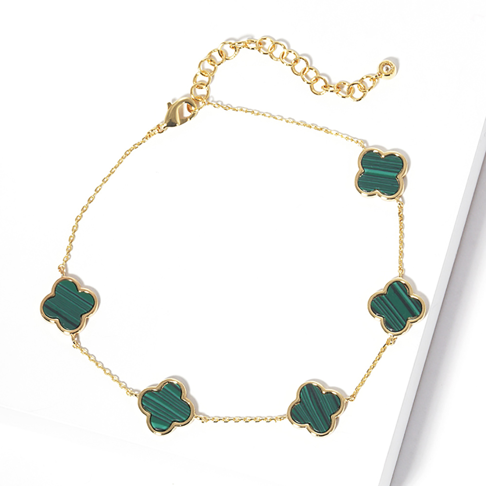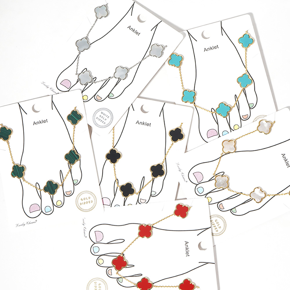 Gold Dipped Mother of Pearl Quatrefoil Link Anklet
