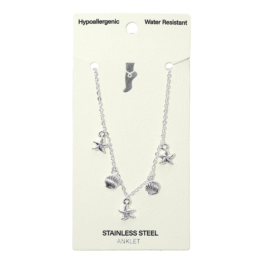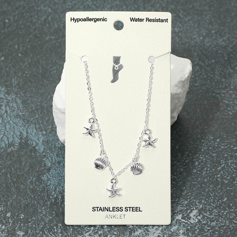 Stainless Steel Starfish Shell Charm Station Anklet Stainless Steel Starfish Shell Charm Station Anklet Stainless Steel Starfish Shell Charm Station Anklet