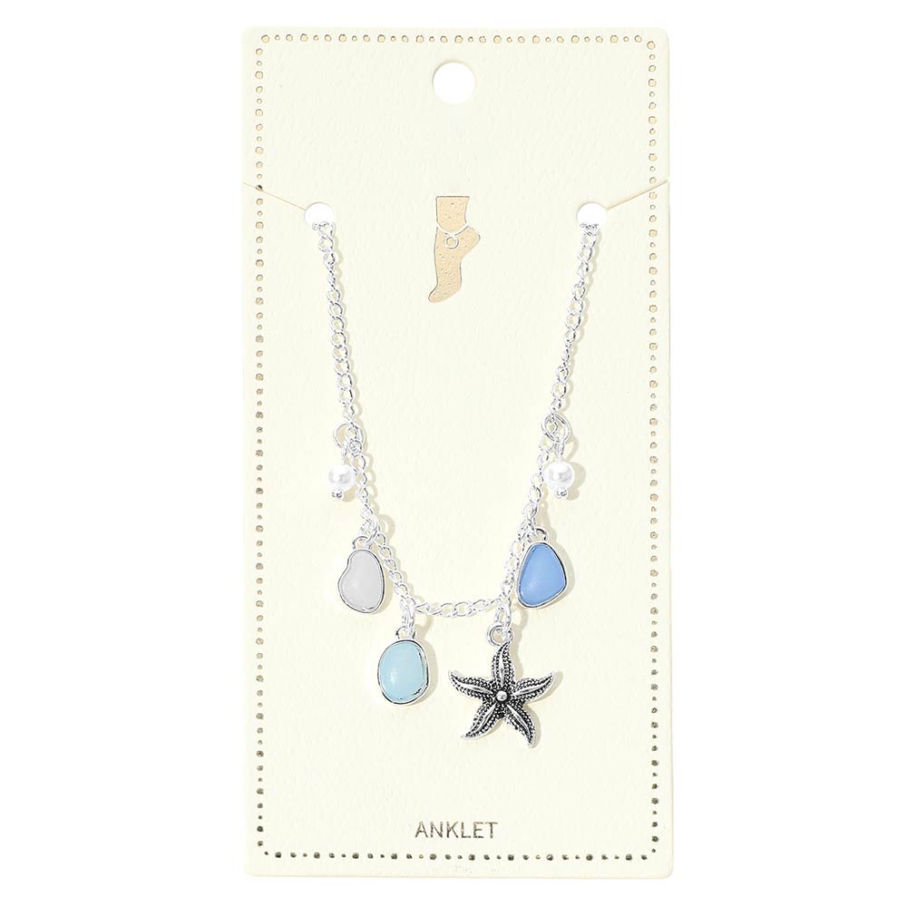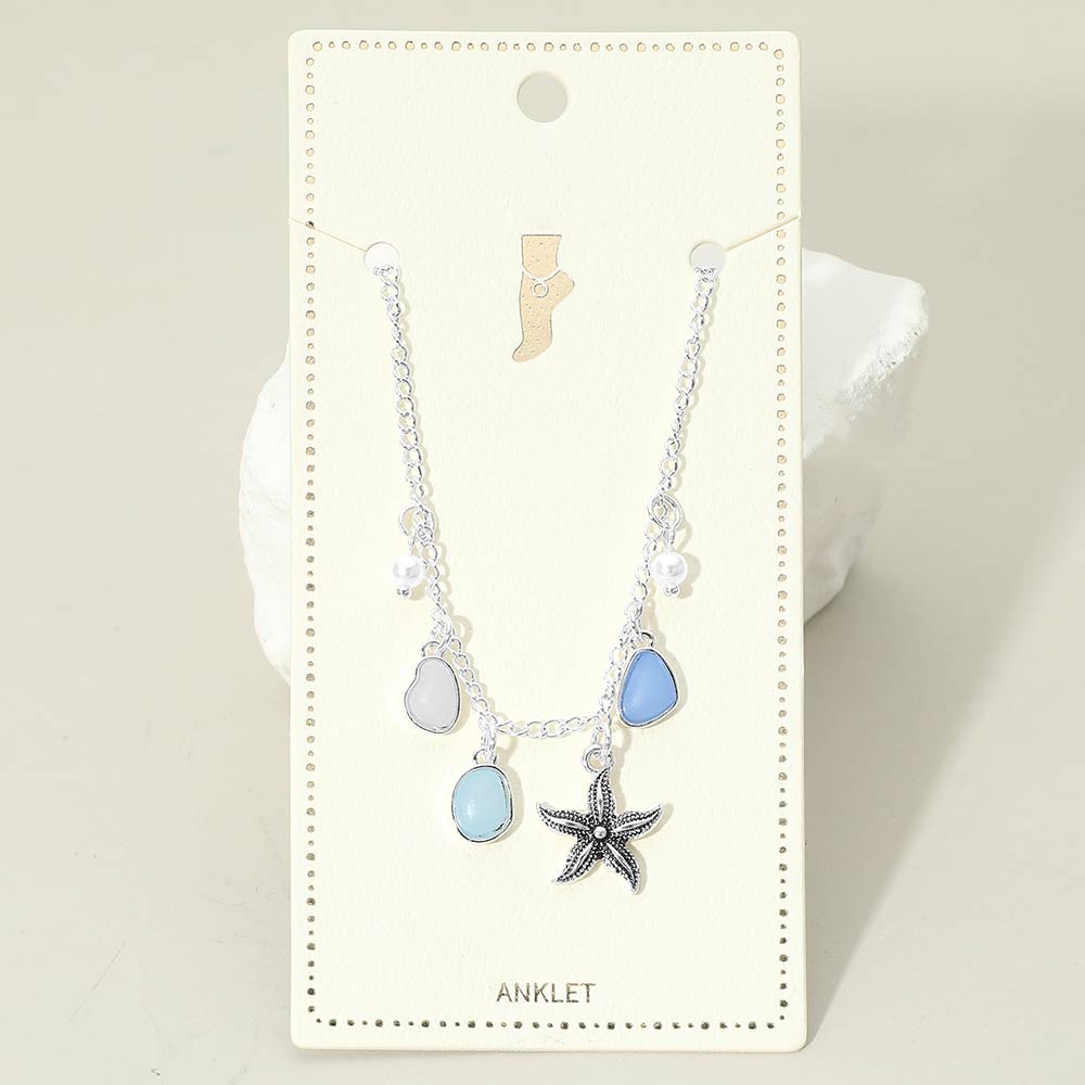 Starfish Sea Glass Pearl Charm Station Anklet