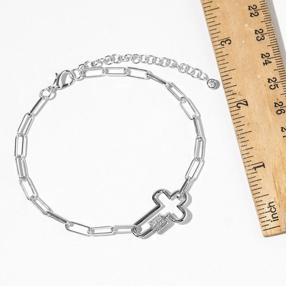 Details • Size : 0.7" H, 8.5" + 2.5" L • Lobster Clasp Closure • Elegant cross charm anklet featuring a modern link chain design accented with sparkling cz stone details. This ankle bracelet adds a refined yet playful touch to everyday and dressy looks, making it perfect for layering or wearing solo. A versatile accessory ideal for boutiques, seasonal styling, and trend-forward collections. • Made In Korea • Gold Dipped • CZ Cubic Zirconia
