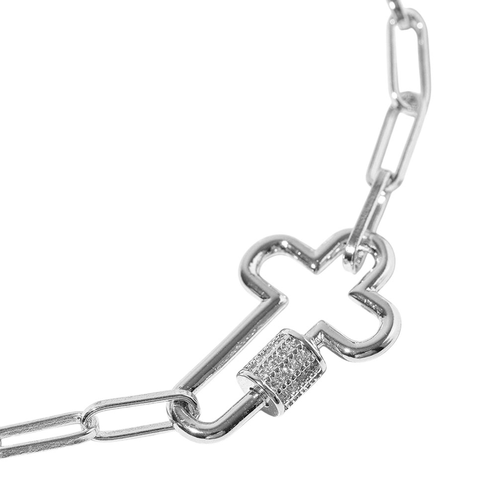 Gold Dipped CZ Stone Paved Open Cross Carabiner Paperclip Link Chain Anklet