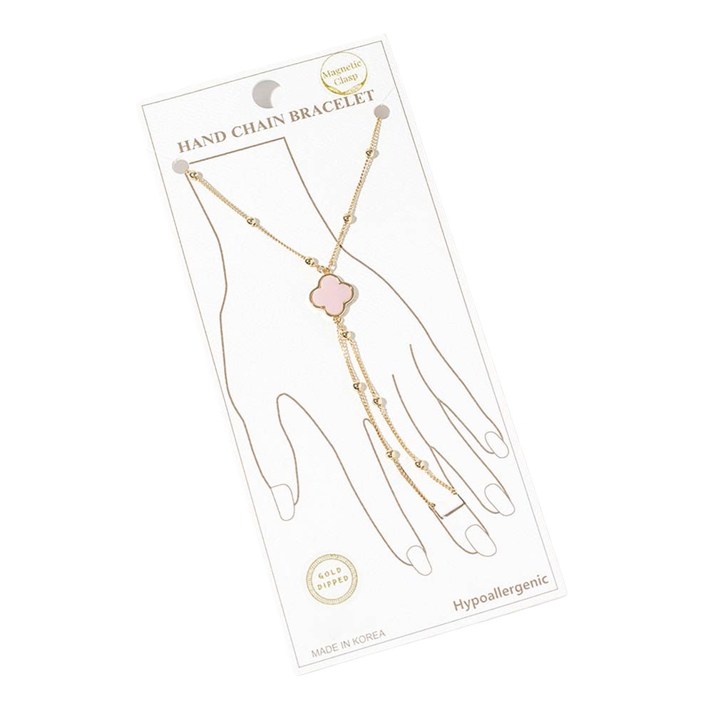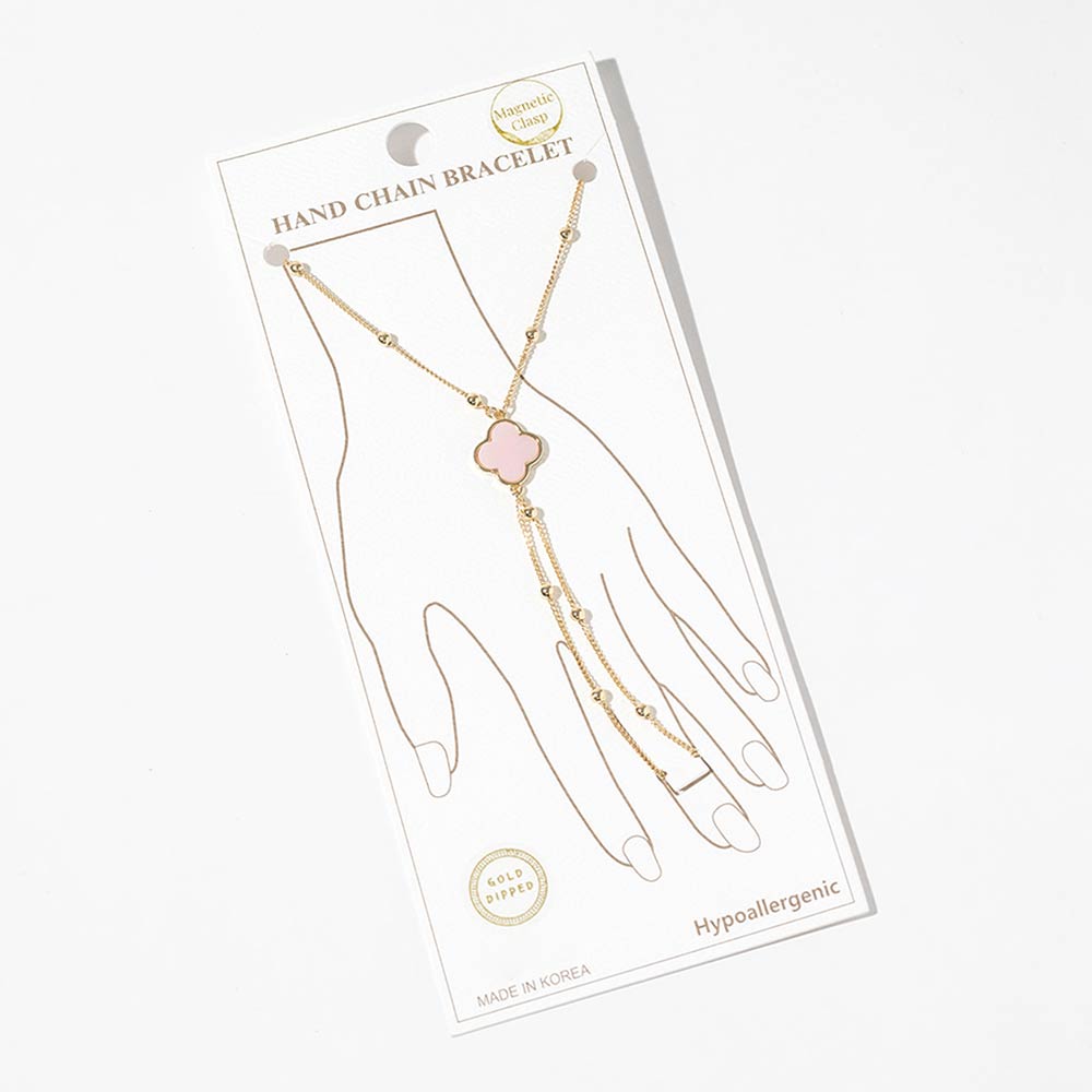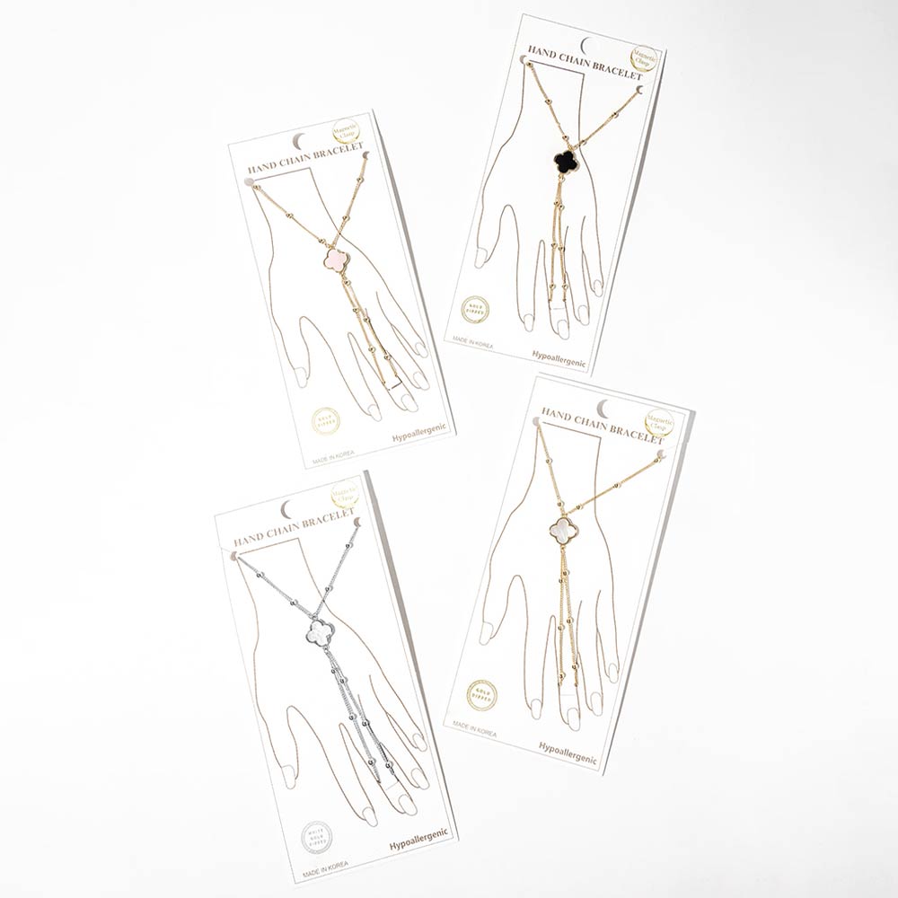 • This stylish hand chain bracelet features a refined clover quatrefoil creates an elegant layered look. Finished with an easy magnetic clasp for comfortable wear, it adds a chic statement to everyday outfits, special occasions, and curated boutique jewelry collections. Designed to stand out while remaining versatile and wearable.
