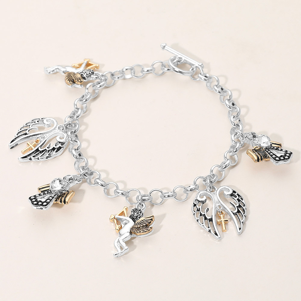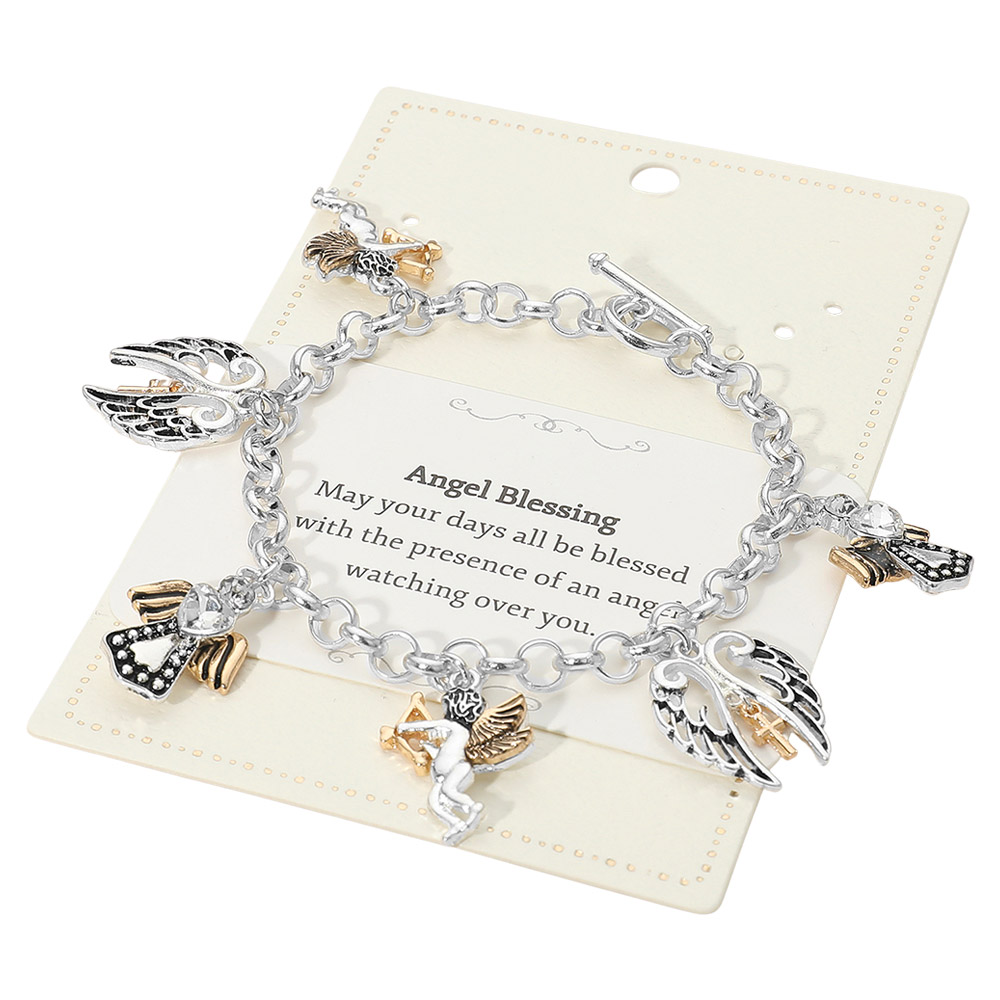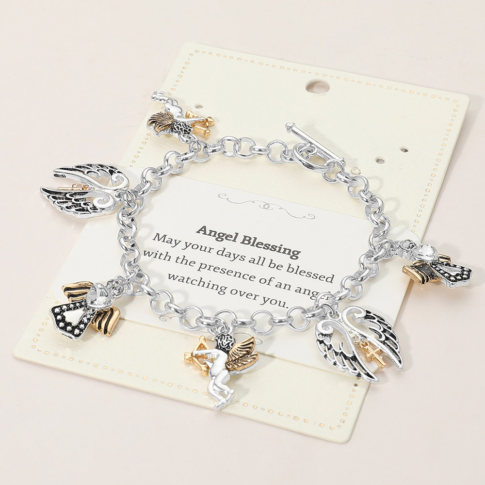 Details • Size : 1.2" H, 8" L • Toggle Closure • Celebrate meaningful style with this angel blessing charm bracelet featuring detailed symbolic accents and an inspiring theme of protection and care. A heartfelt piece perfect for gifting or daily wear, adding sentiment to special moments, faith-inspired occasions, or everyday expression. • Lead and Nickel Compliant