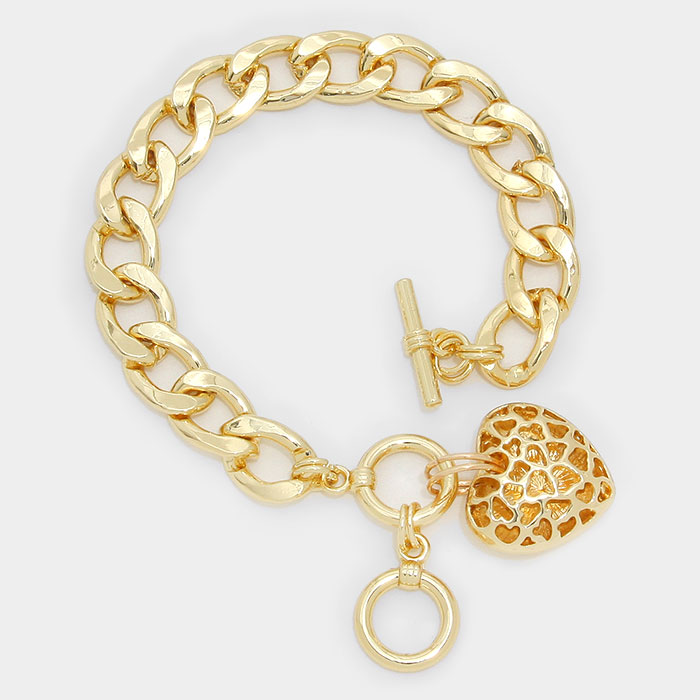 Gold Dipped Bold Puffy Heart Pendant Paperclip Link Chain Necklace