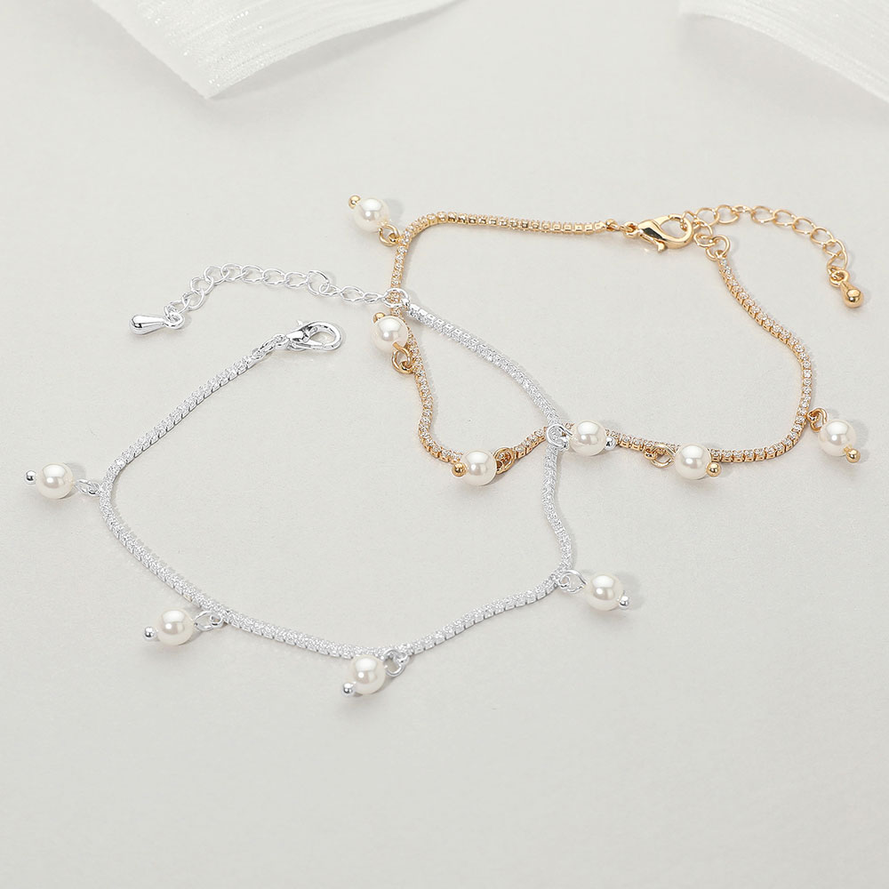 • This refined bracelet features a sleek, shimmering chain adorned with delicate pearl drops for a timeless touch of sophistication. The adjustable clasp ensures a perfect fit, making it a versatile piece that enhances both everyday style and formal attire.