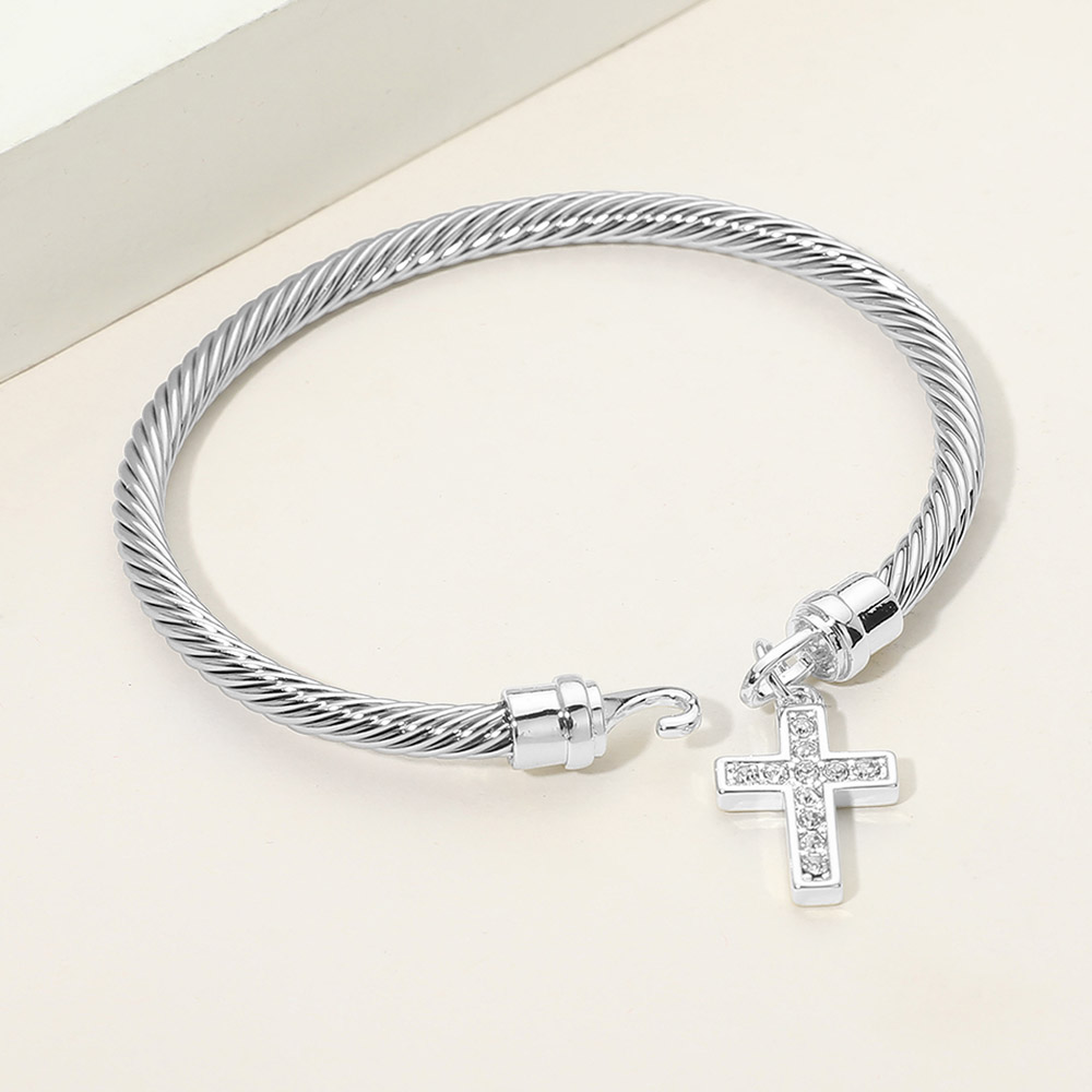 Details • Size : 0.2" H, 2.25" D • Charm Size : 0.75" L • Hook Closure • This cross charm cable style bracelet features a clean, structured silhouette paired with a symbolic dangling cross for a meaningful accent. Designed for everyday wear or special occasions, it offers a secure fit and refined look that works well for gifting, faith-inspired collections, layering, or boutique jewelry assortments seeking timeless appeal. • CZ Cubic Zirconia