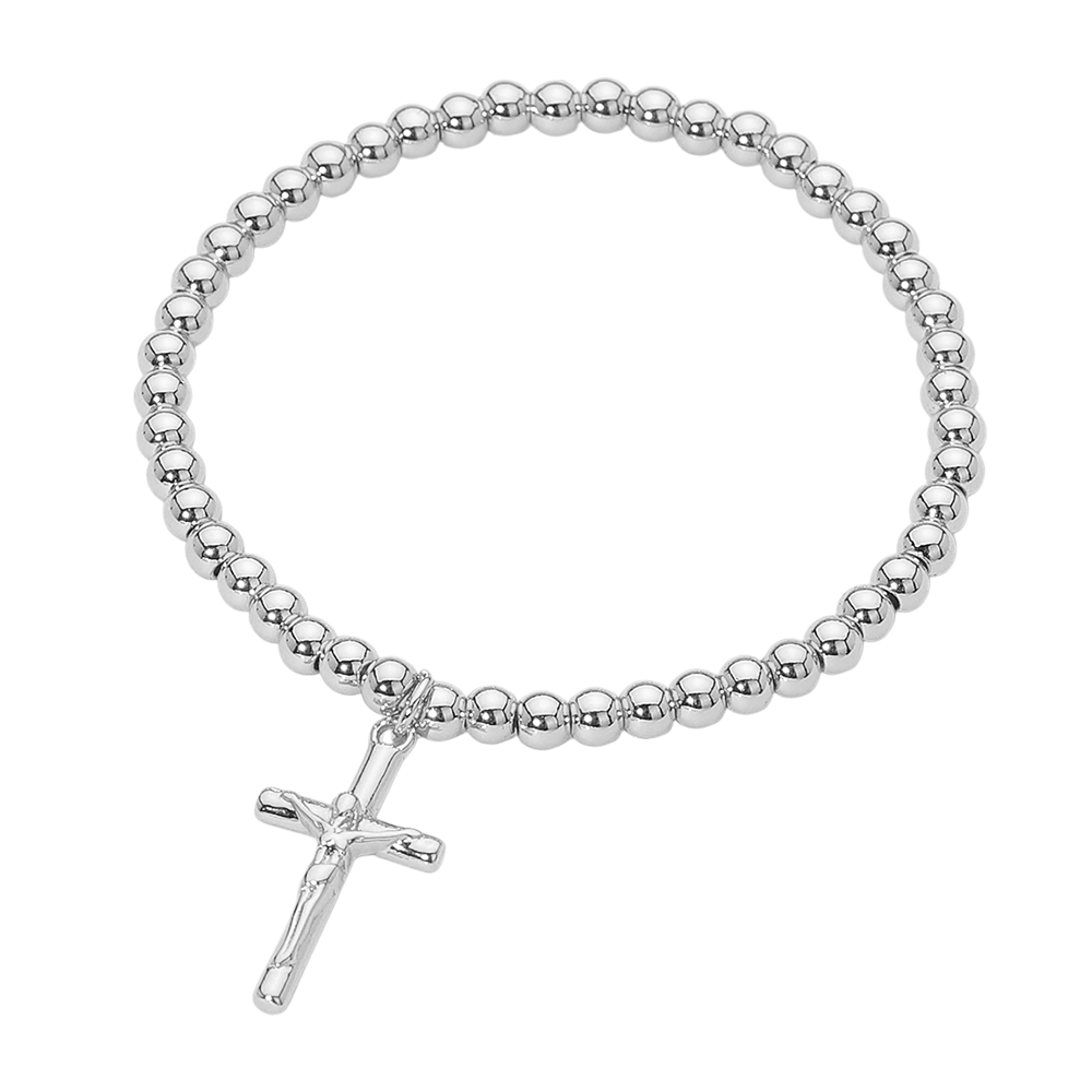 Details • Size : 0.1" H • Charm Size : 0.5" X 0.8" • Stretchable • This cross charm beaded stretch bracelet features a classic cross charm paired with smooth round beads for a clean, meaningful look. Designed with a comfortable stretch fit, it’s ideal for everyday wear, layering, faith-inspired gifting, boutique collections, and customers seeking timeless symbolic jewelry. • Stainless Steel