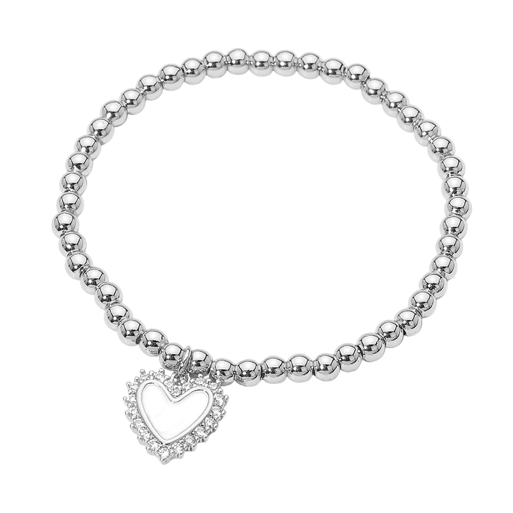 Stainless Steel CZ Trim Mother of Pearl Heart Charm Beaded Stretch Bracelet Stainless Steel CZ Trim Mother of Pearl Heart Charm Beaded Stretch Bracelet Stainless Steel CZ Trim Mother of Pearl Heart Charm Beaded Stretch Bracelet Stainless Steel CZ Trim Mother of Pearl Heart Charm Beaded Stretch Bracelet