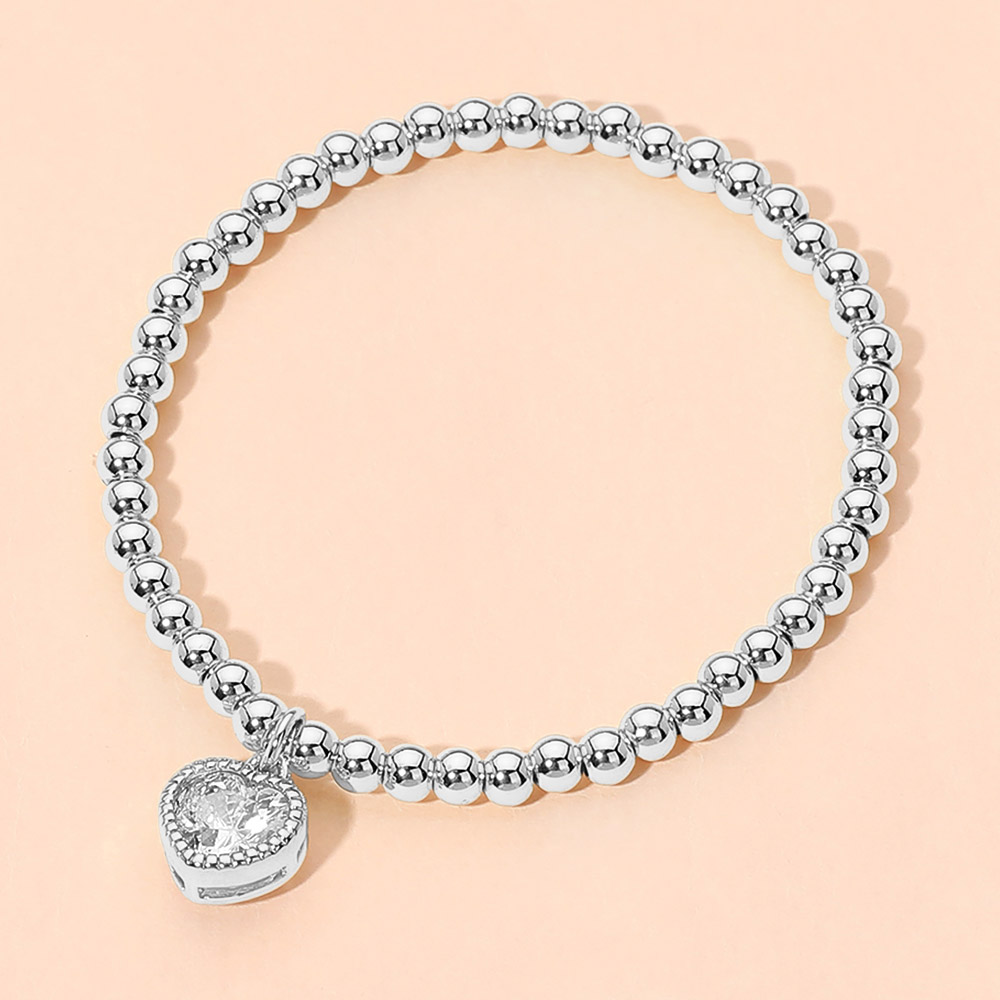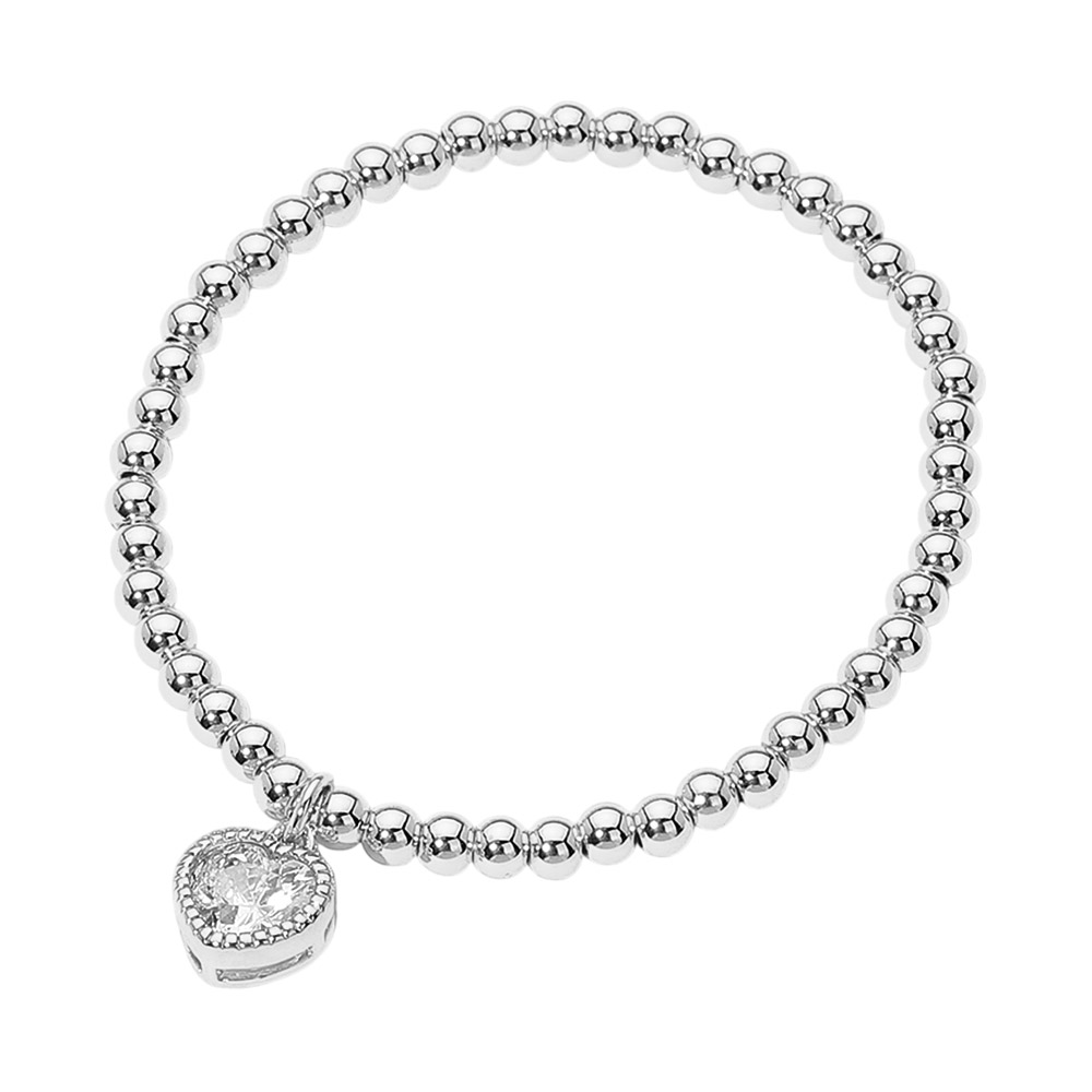 Details • Size : 0.1" H • Charm Size : 0.3" L • Stretchable • Elegant beaded bracelet featuring a heart charm adorned with a crystal-studded half and a smooth pearl finish. A timeless design perfect for romantic gifts or adding a charming detail to your look. • Lead and Nickel Compliant • Stainless Steel