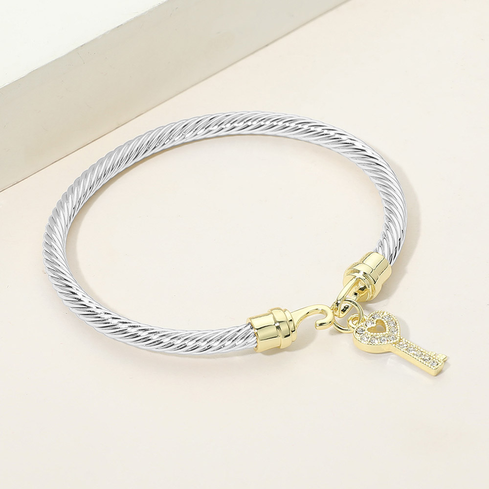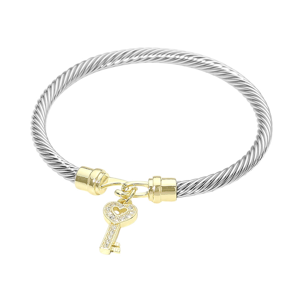 Two Tone CZ Pave Key Charm Cable Bangle Bracelet Two Tone CZ Pave Key Charm Cable Bangle Bracelet Two Tone CZ Pave Key Charm Cable Bangle Bracelet Two Tone CZ Pave Key Charm Cable Bangle Bracelet