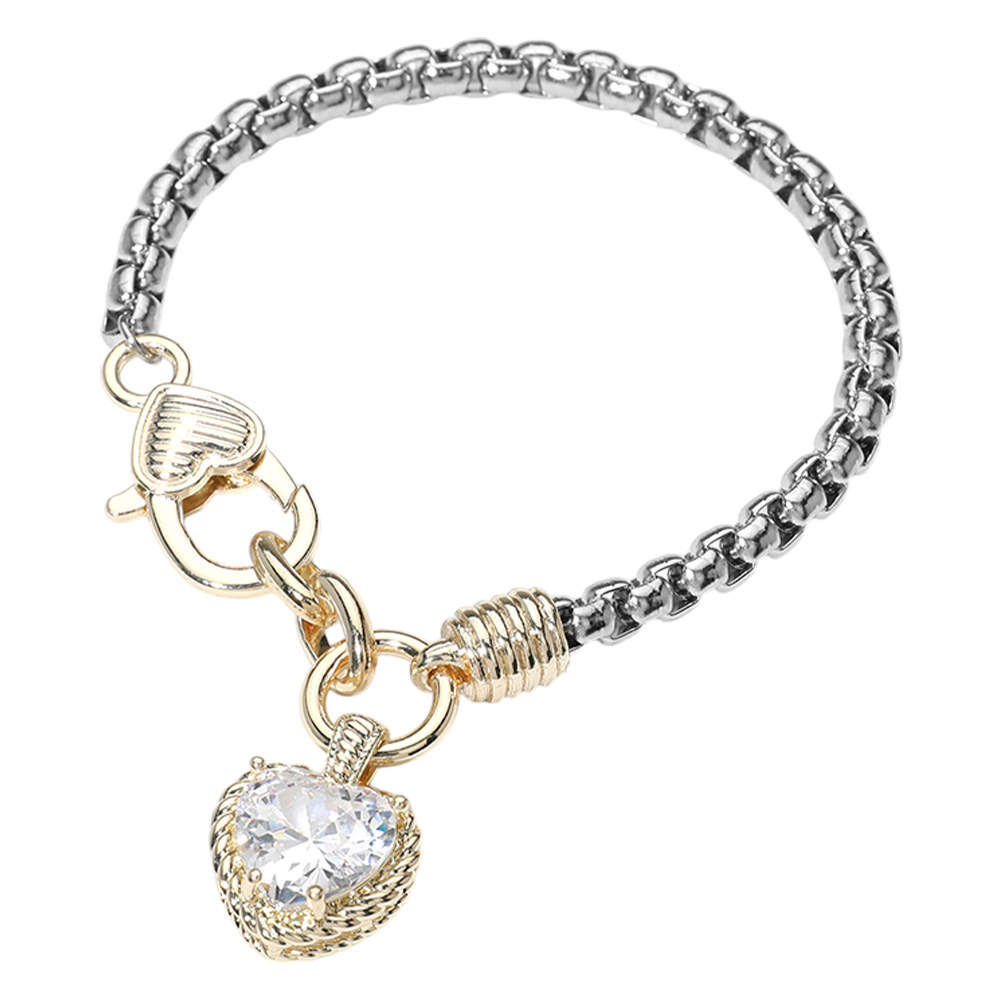 Two Tone CZ Stone Heart Charm Bracelet Two Tone CZ Stone Heart Charm Bracelet
