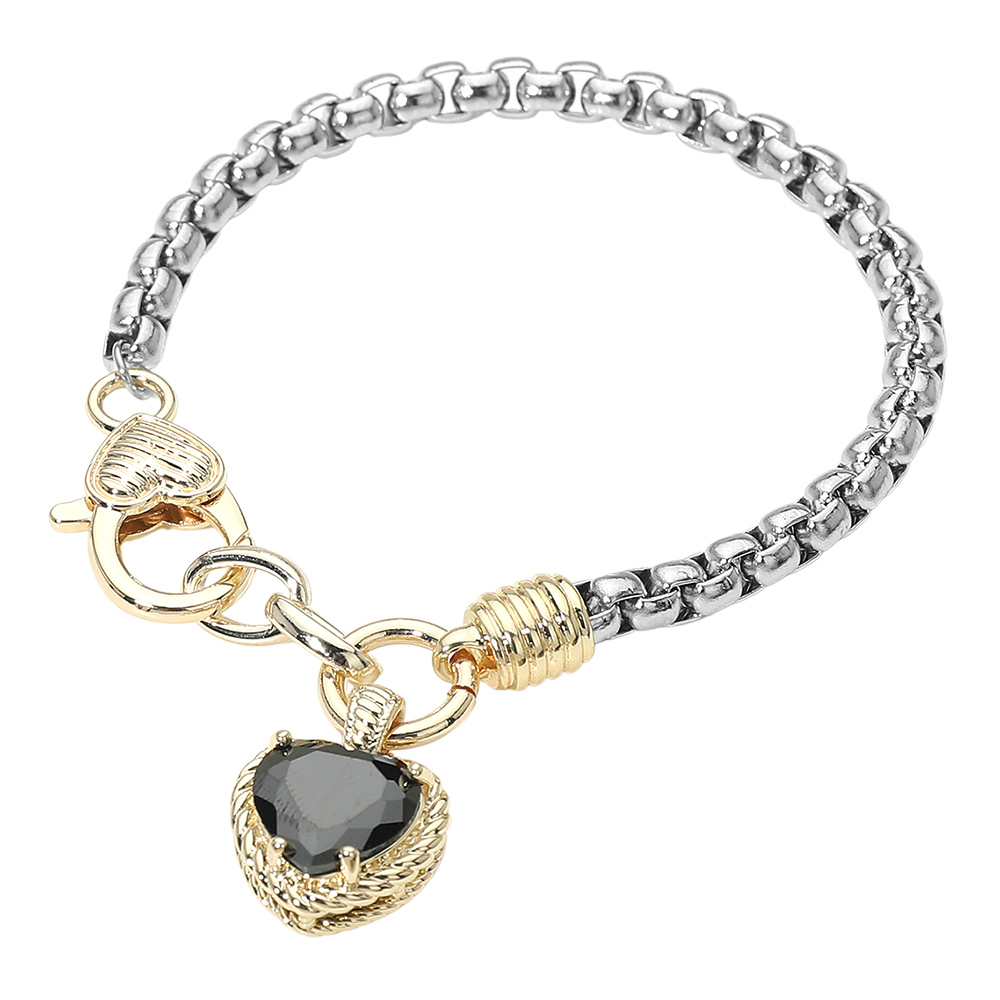 Two Tone CZ Stone Heart Charm Bracelet Two Tone CZ Stone Heart Charm Bracelet