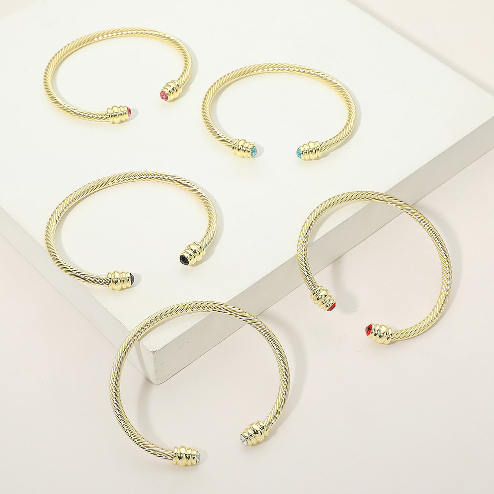 14K Gold Plated CZ Stone Tip Twisted Cable Cuff Bracelet 14K Gold Plated CZ Stone Tip Twisted Cable Cuff Bracelet 14K Gold Plated CZ Stone Tip Twisted Cable Cuff Bracelet