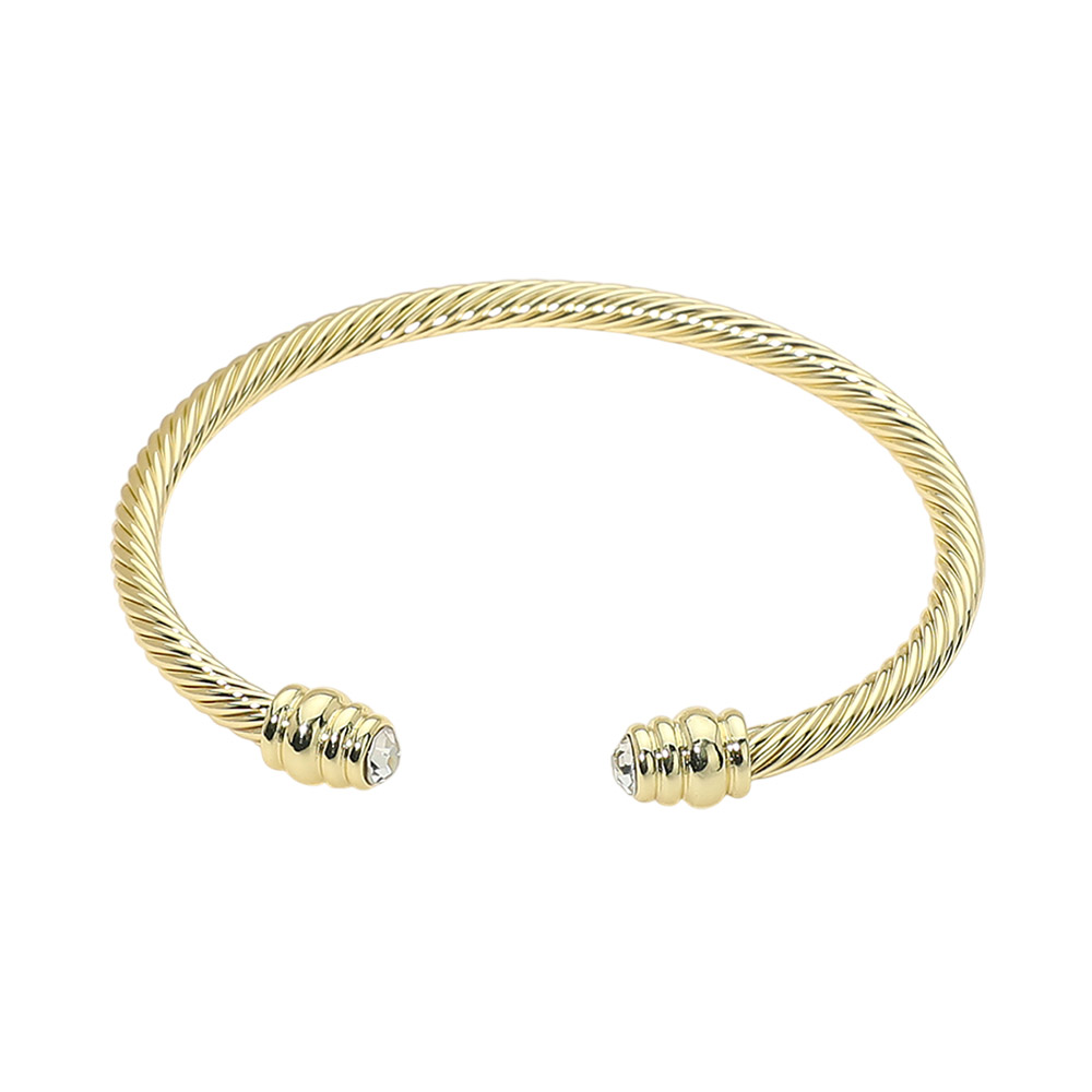 14K Gold Plated CZ Stone Tip Twisted Cable Cuff Bracelet