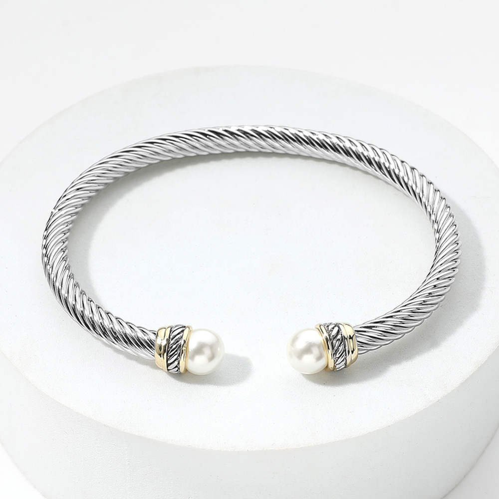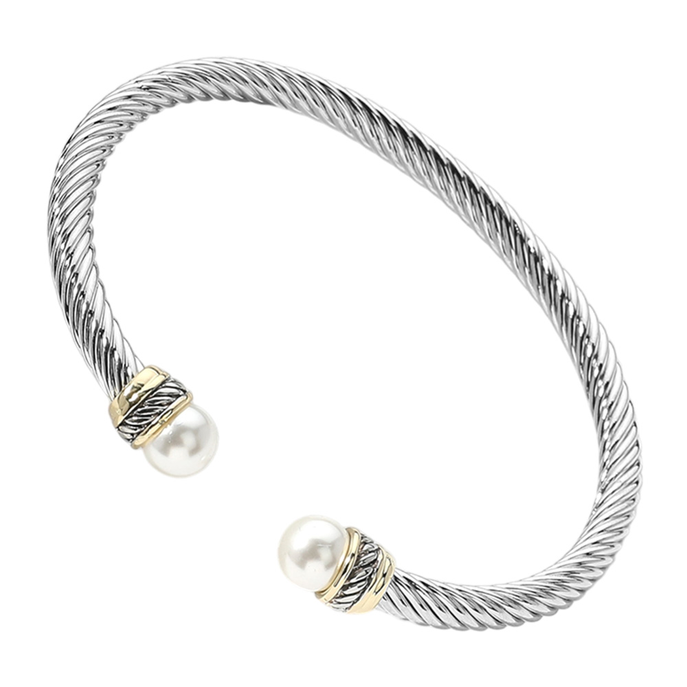 Details • Size : 0.3" H, 2.4" D • Cuff • Elevate your style with this sophisticated twisted cable cuff bracelet, featuring lustrous pearl accents on each end. Hypoallergenic and timeless, it’s perfect for everyday elegance or special occasions, offering a versatile accessory that complements any look effortlessly.