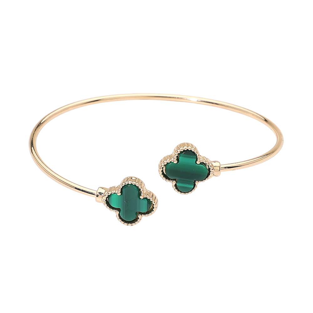 • Elegant open cuff bracelet featuring dual quatrefoil-shaped accents with a polished outline and smooth inlay finish. Designed for easy wear and a refined statement, this versatile piece complements everyday outfits, office looks, and special occasions. Ideal for gifting, boutique collections, or customers seeking a timeless symbol-inspired accessory.