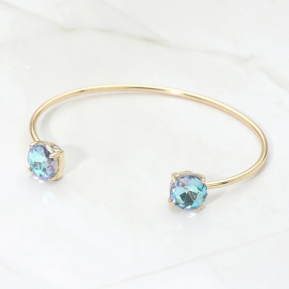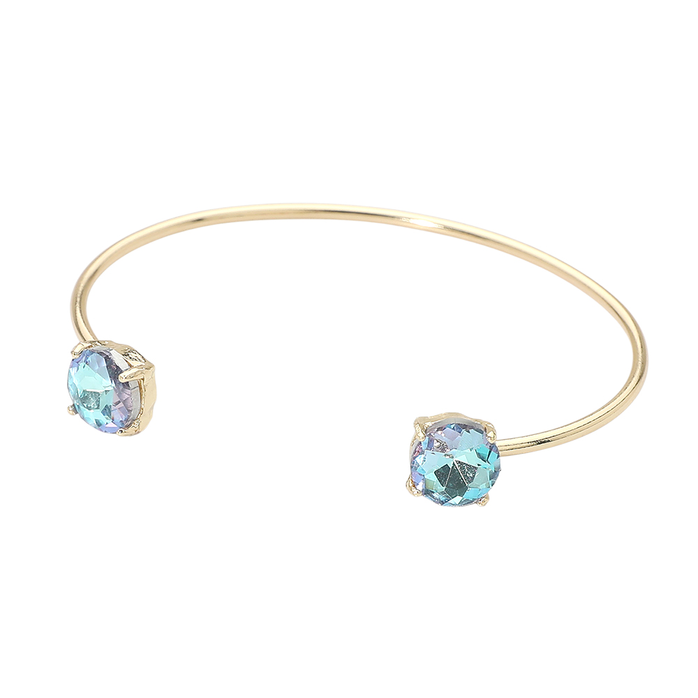 Details • Size : 0.4" H, 2.5" D • Cuff • This double stone open cuff bracelet features a sleek minimalist silhouette accented with two faceted stones for subtle sparkle. Designed for easy slip-on wear, it offers a modern, refined look that works for everyday styling or special occasions, making it a versatile choice for boutique jewelry collections and gift-ready displays. • Lead and Nickel Compliant