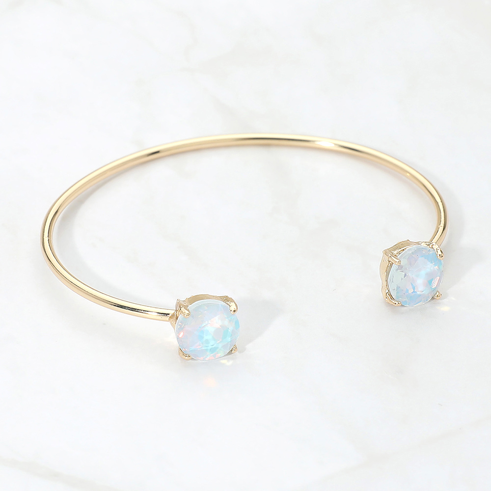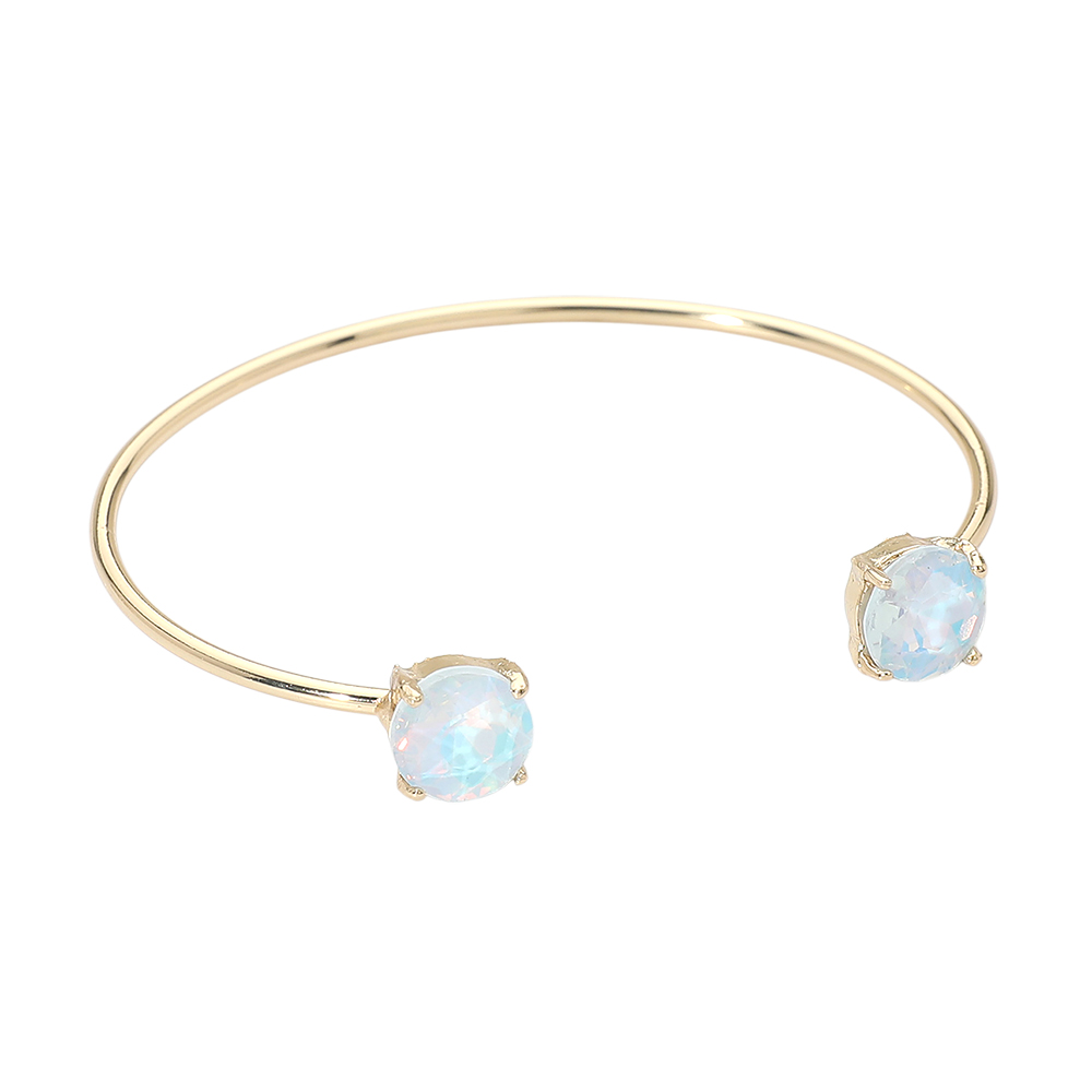 • This double stone open cuff bracelet features a sleek minimalist silhouette accented with two faceted stones for subtle sparkle. Designed for easy slip-on wear, it offers a modern, refined look that works for everyday styling or special occasions, making it a versatile choice for boutique jewelry collections and gift-ready displays.