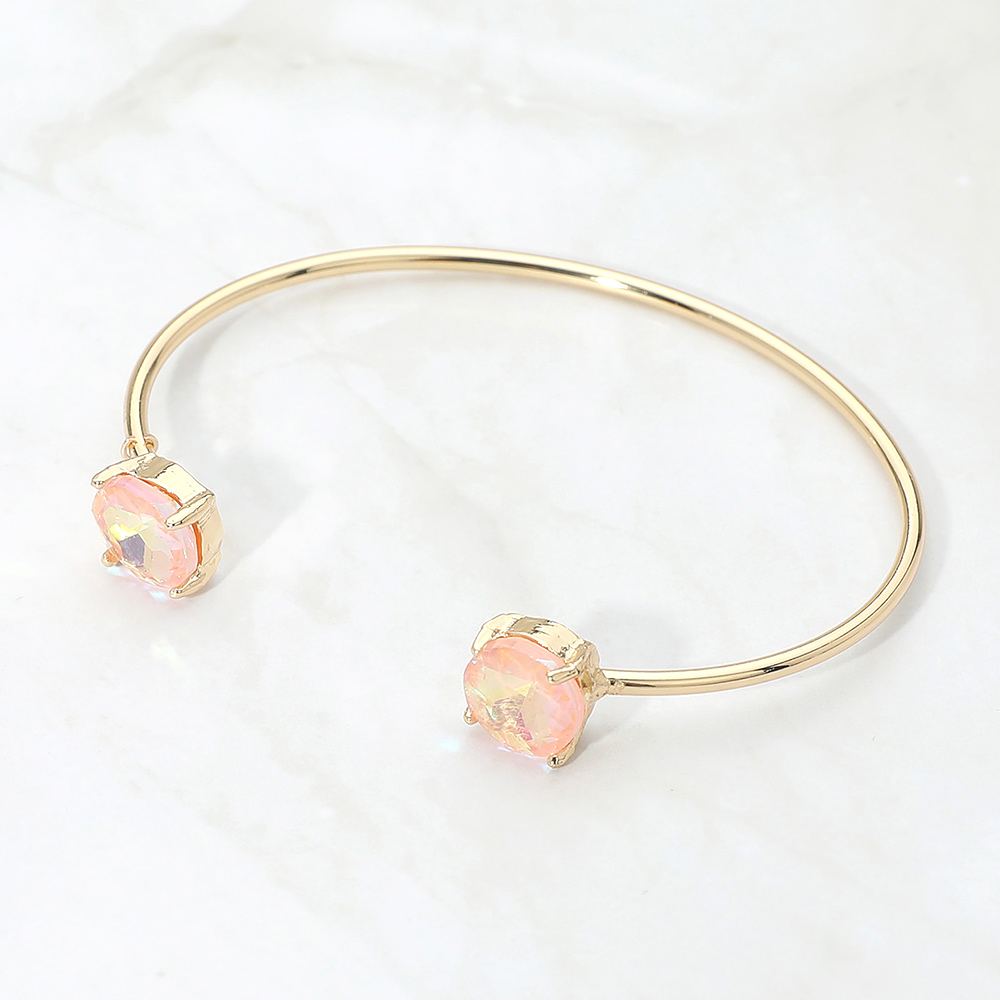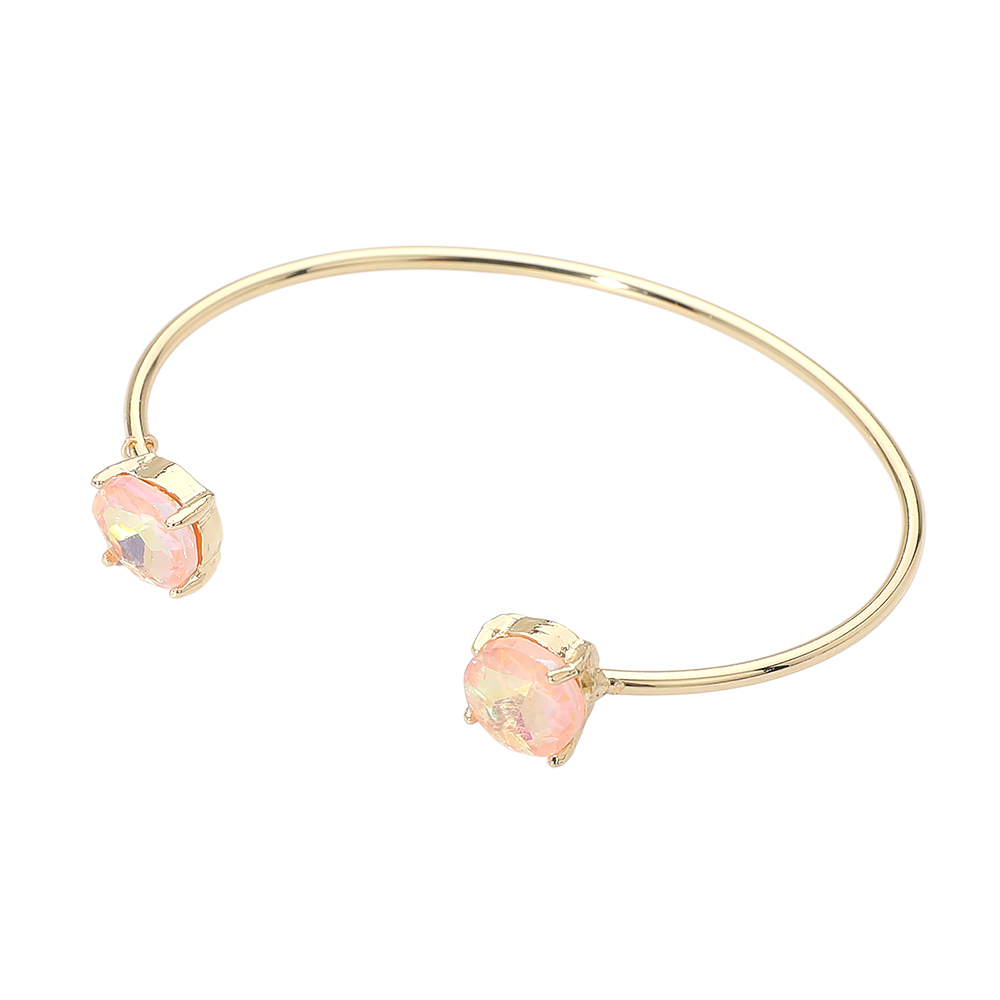 • This double stone open cuff bracelet features a sleek minimalist silhouette accented with two faceted stones for subtle sparkle. Designed for easy slip-on wear, it offers a modern, refined look that works for everyday styling or special occasions, making it a versatile choice for boutique jewelry collections and gift-ready displays.