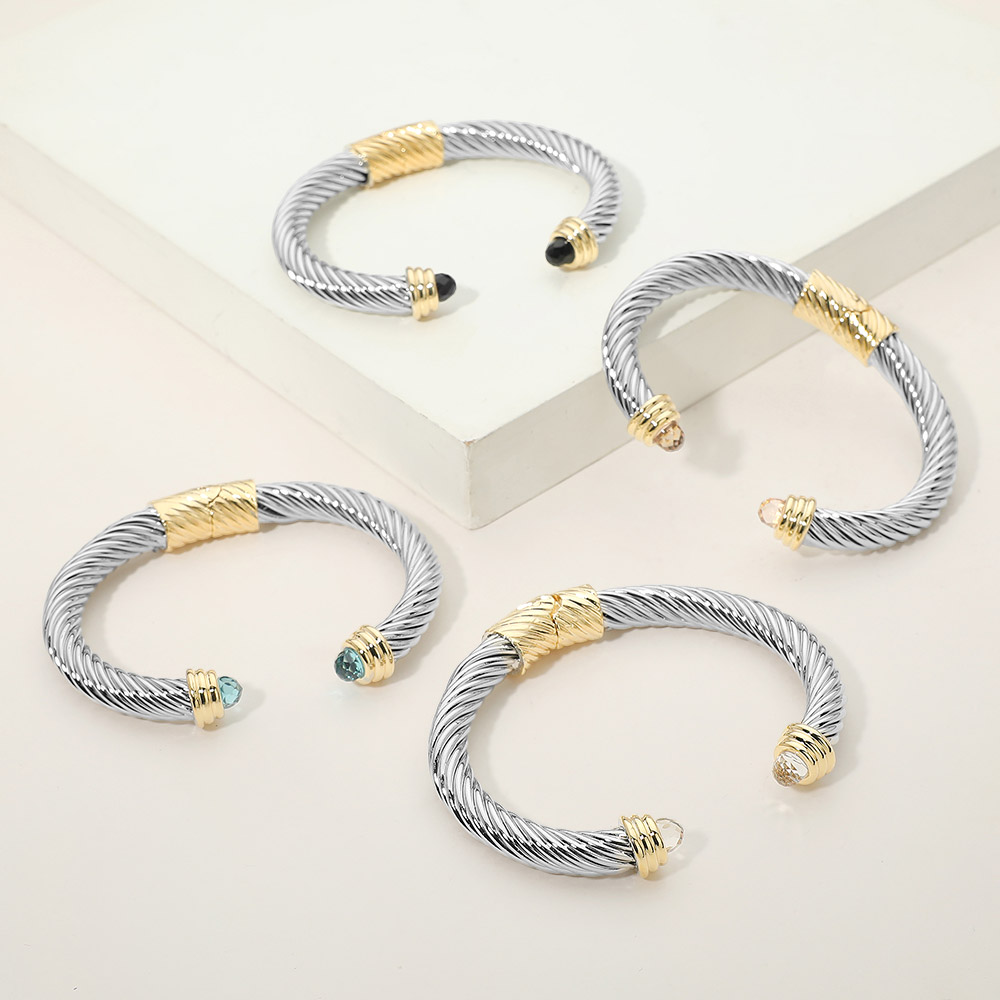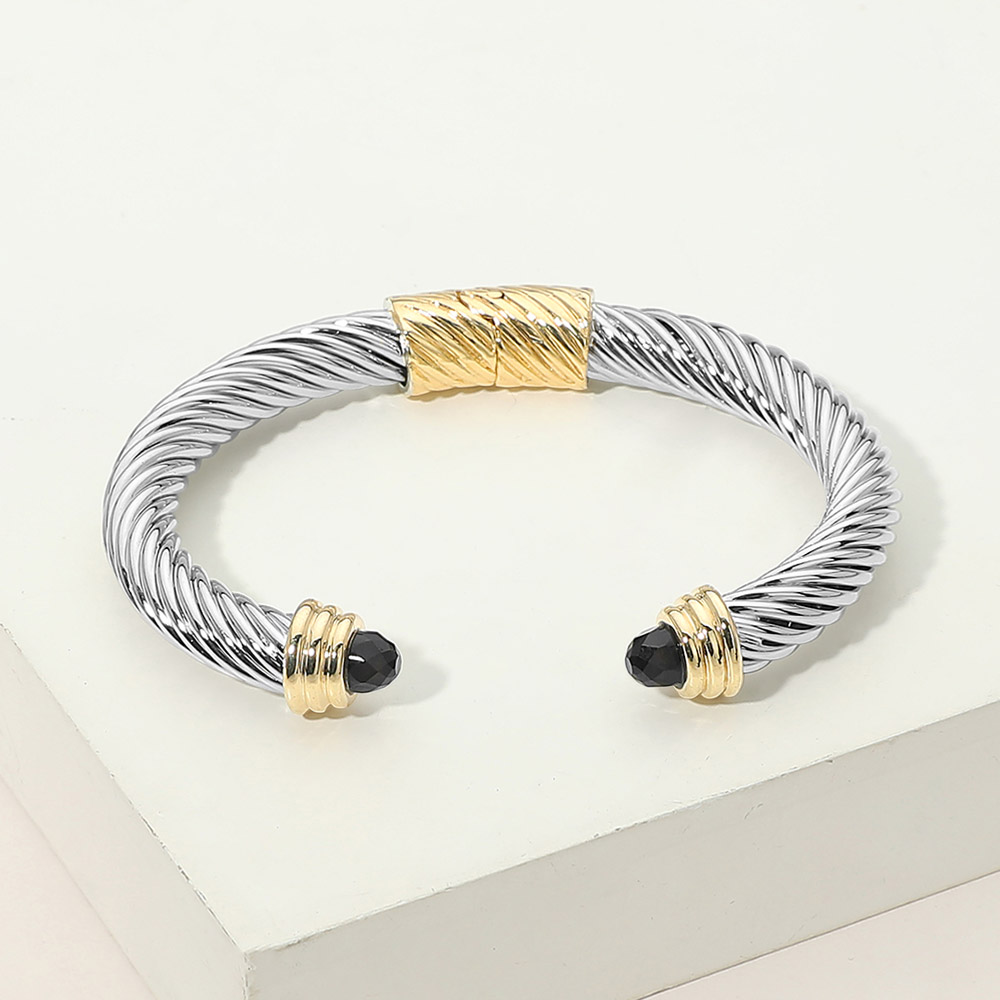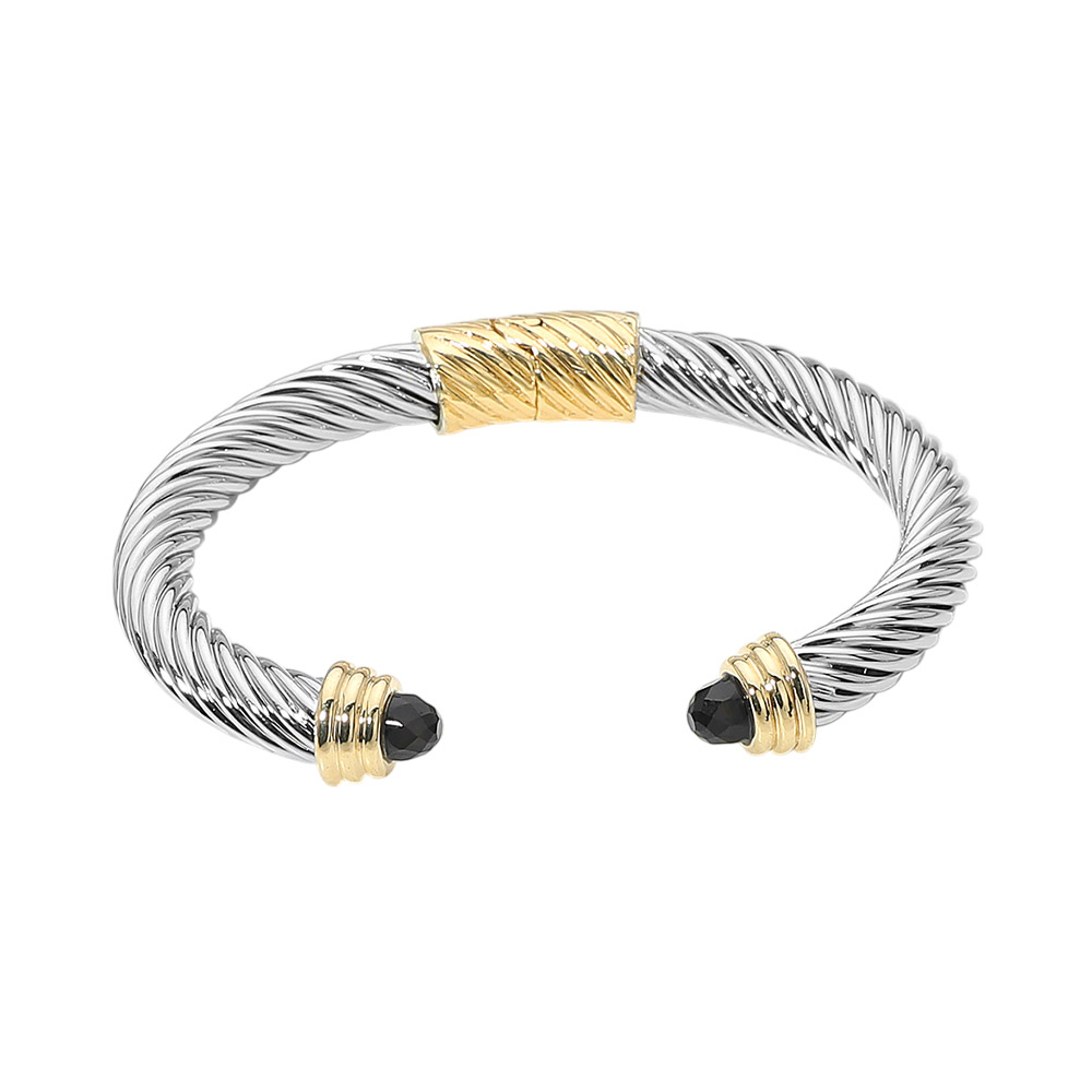 Faceted Stone Tip Twisted Cable Hinged Cuff Bracelet