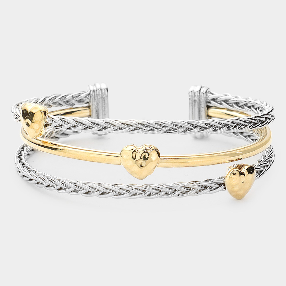 Hammered Metal Heart Split Cuff Bracelet