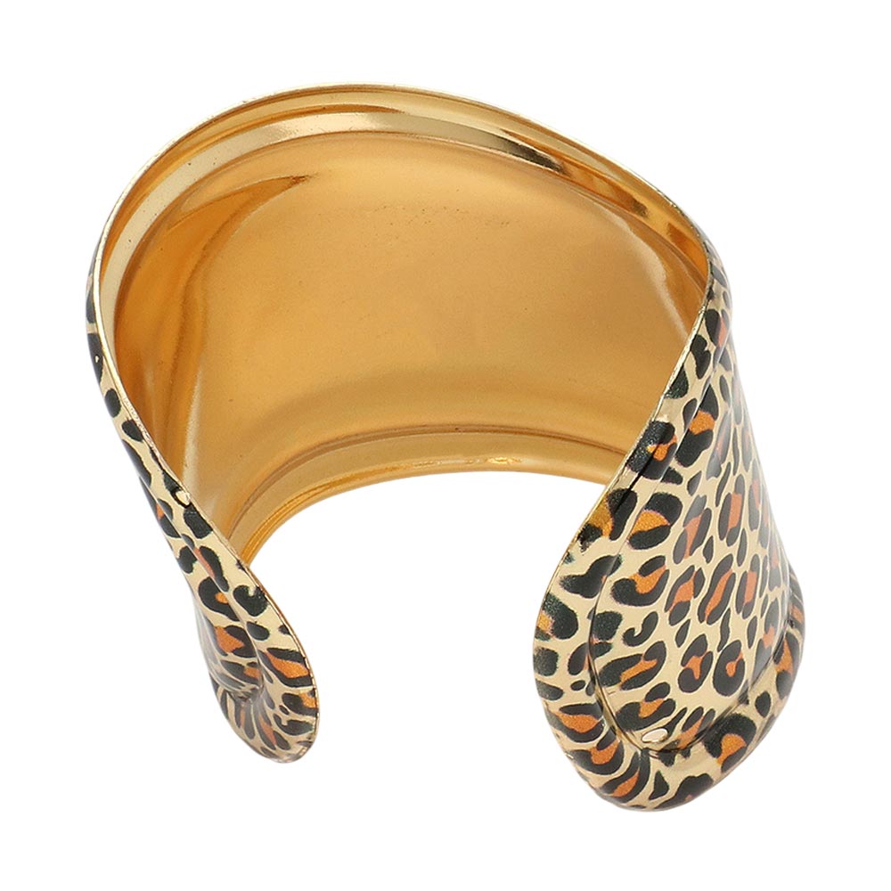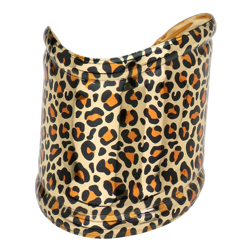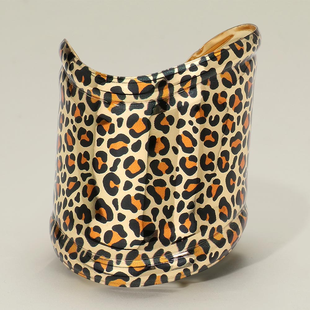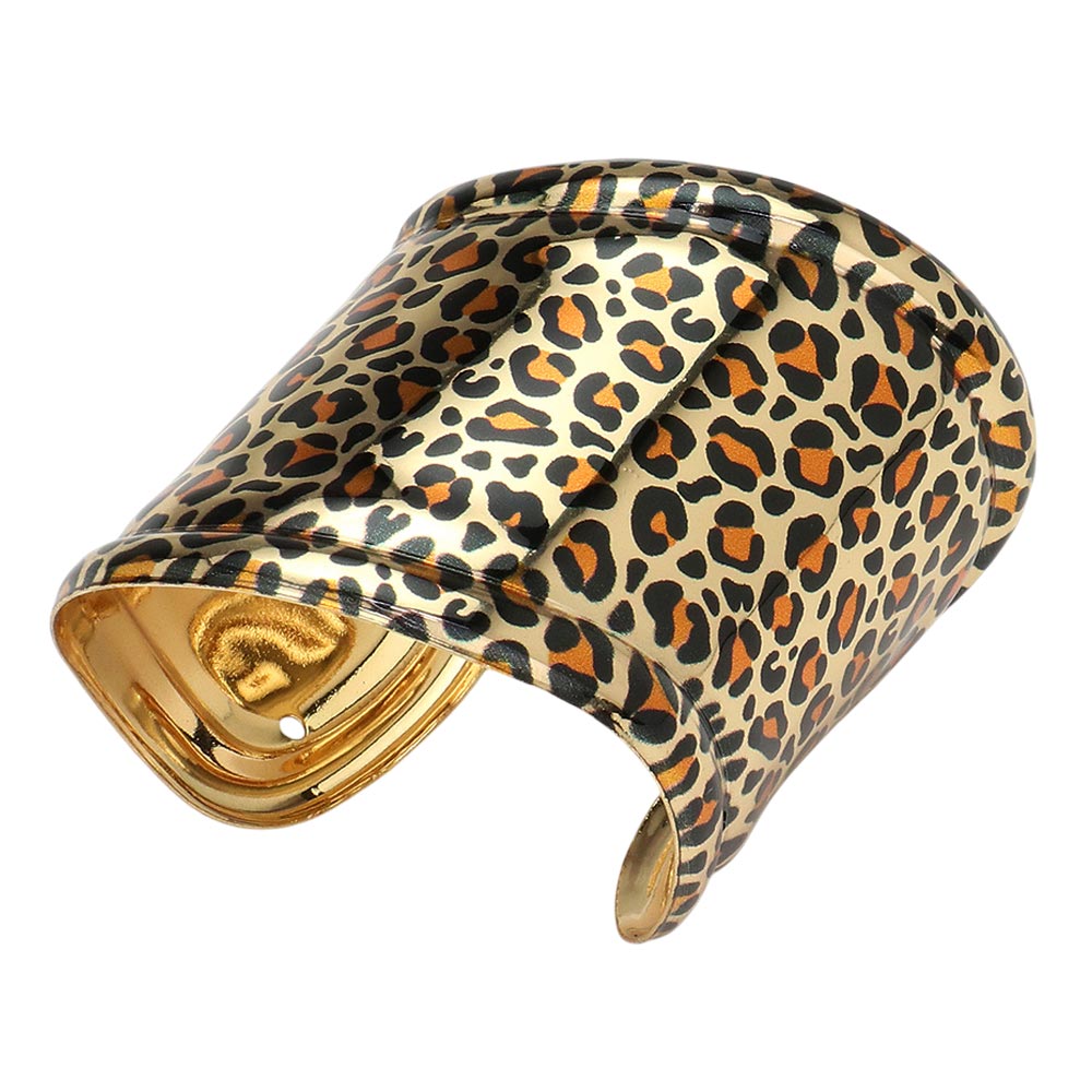 Details • Size : 2.25" H, 2.2" D • Cuff • Make an impact with this wide cuff bracelet featuring a striking leopard pattern and sculpted silhouette for standout style. Easy to slip on and comfortable to wear, it’s ideal for elevating everyday outfits or finishing bold evening looks with confident, fashion-forward flair. • Lead and Nickel Compliant