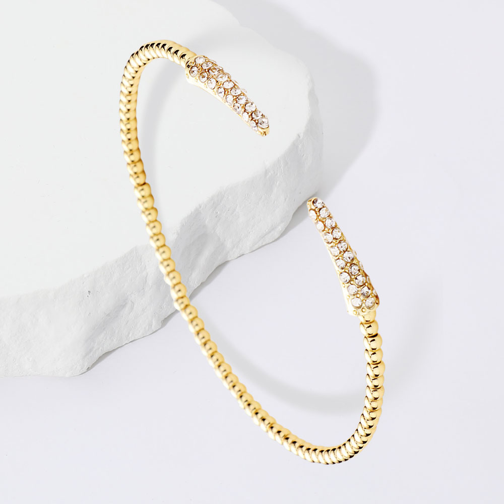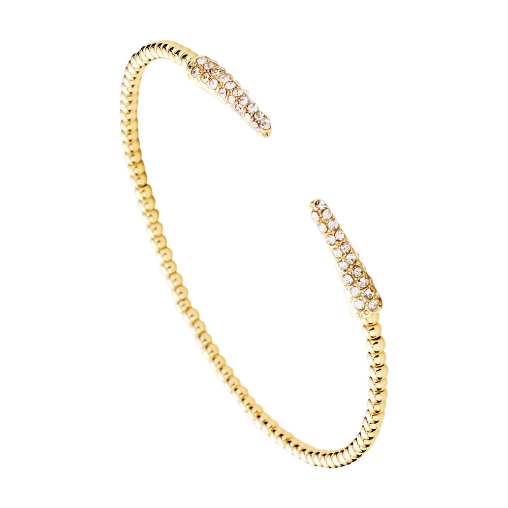 • Add subtle sophistication to your look with this open cuff bracelet. Designed with a sleek beaded texture and sparkling tips, it offers timeless style perfect for layering or wearing solo, making it an essential accessory for chic everyday fashion.