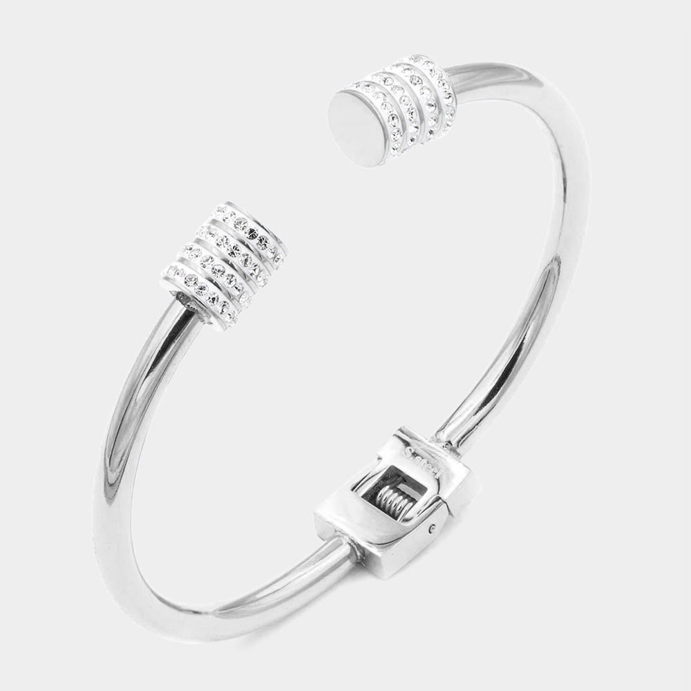 Rhinestone Embellished Tip Stainless Steel Cuff Evening Bracelet