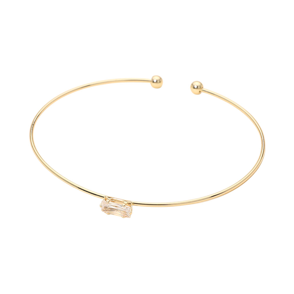 Details • Size : 0.2" H, 2.5" D • Cuff • Sleek open cuff bracelet designed with a single rectangular stone accent for a clean, modern look. This refined piece offers effortless elegance and easy styling, making it ideal for everyday wear, stacking with other bracelets, gifting, and versatile fashion jewelry collections. • Brass