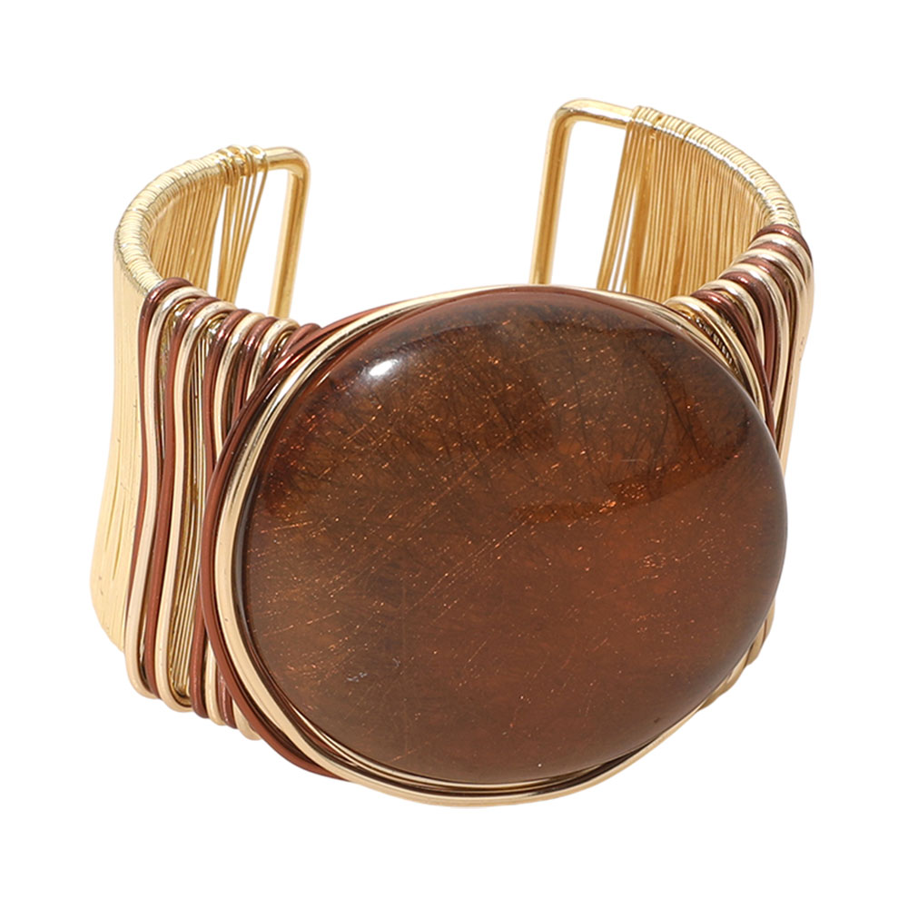• Statement cuff bracelet featuring a smooth oval stone centerpiece framed by layered wire detailing. Designed with an open cuff silhouette for easy styling, this bold accessory adds artisanal texture and visual impact to everyday looks, boutique assortments, and gift-ready jewelry collections.
