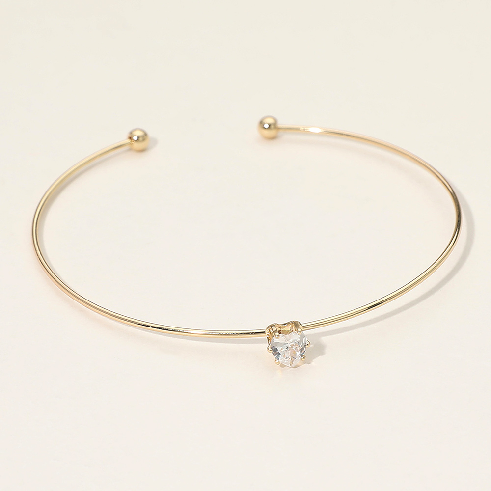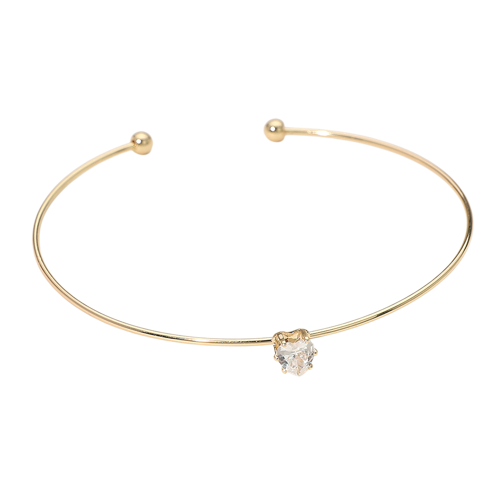 Details • Size : 0.25" H, 2.5" D • Cuff • Sleek open cuff bracelet designed with a refined silhouette and a single heart crystal accent for subtle sparkle. Easy to slip on and style, this minimalist piece layers effortlessly with other bracelets or stands alone as an elegant everyday accessory for modern, polished looks. • Brass