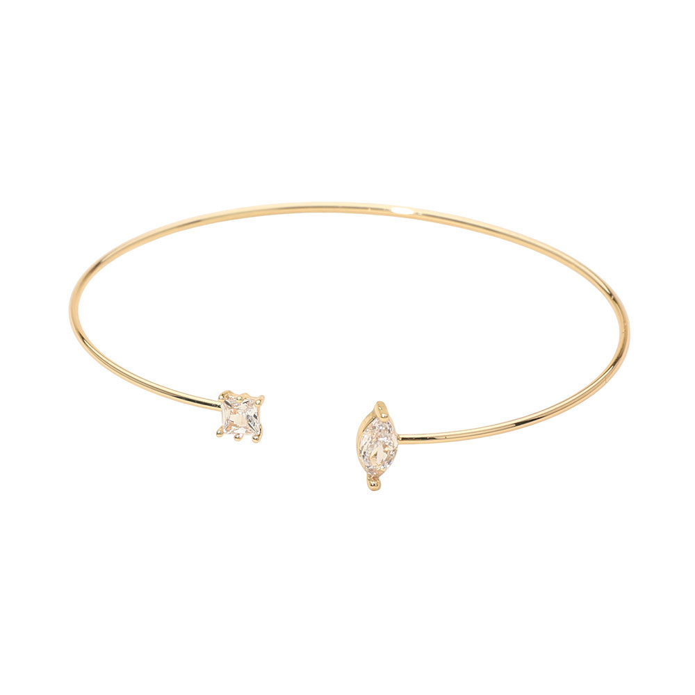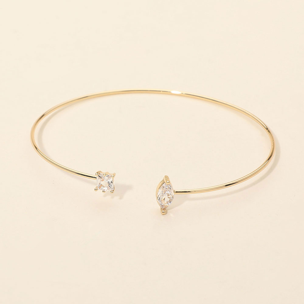 • Sleek open cuff bracelet featuring two distinct stone shapes at each end for a modern, asymmetrical look. Designed to add subtle sparkle and refined elegance, this versatile bracelet is perfect for everyday wear, stacking, gifting, and curated fashion jewelry assortments.