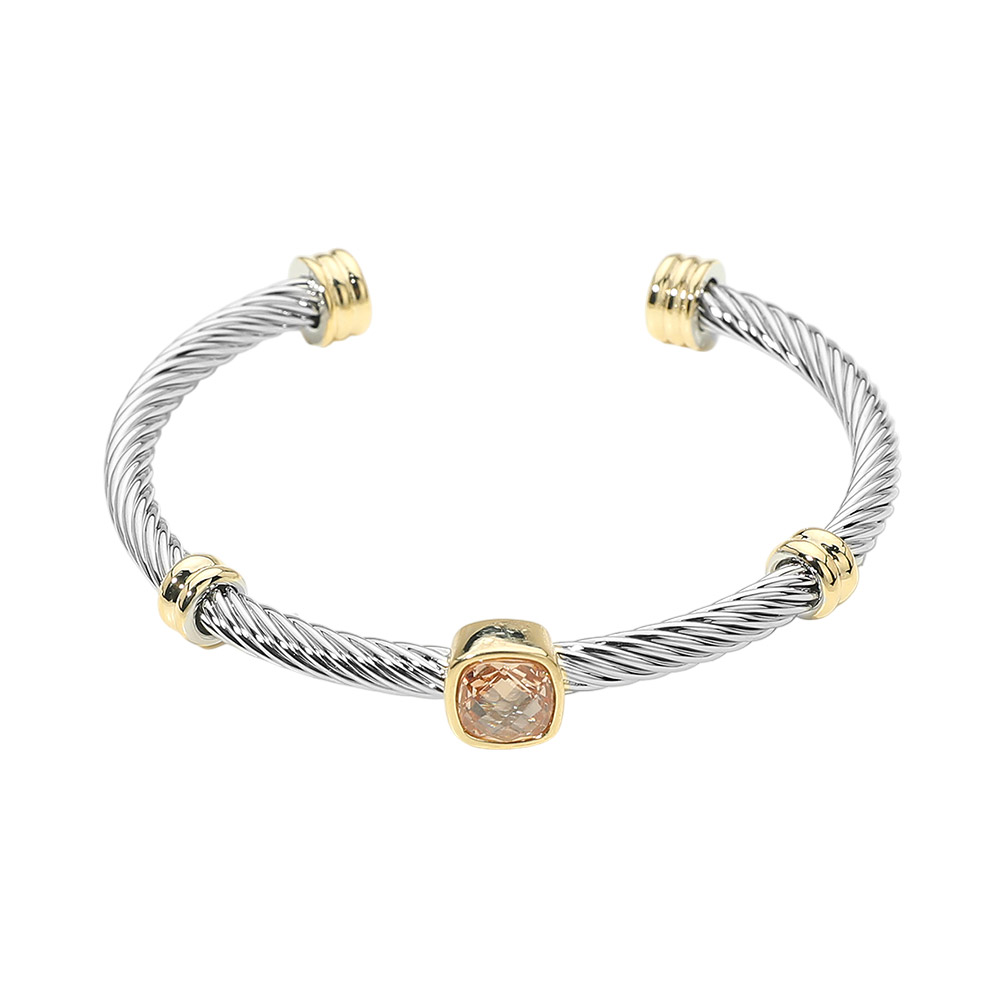 Square Stone Bezel Accent Two Tone Twisted Cable Cuff Bracelet Square Stone Bezel Accent Two Tone Twisted Cable Cuff Bracelet Square Stone Bezel Accent Two Tone Twisted Cable Cuff Bracelet