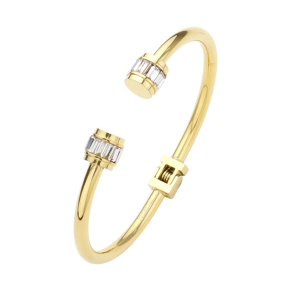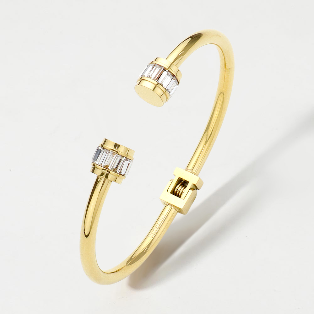 Stainless Steel Baguette Stone Nail Head Tip Hinged Cuff Bracelet
