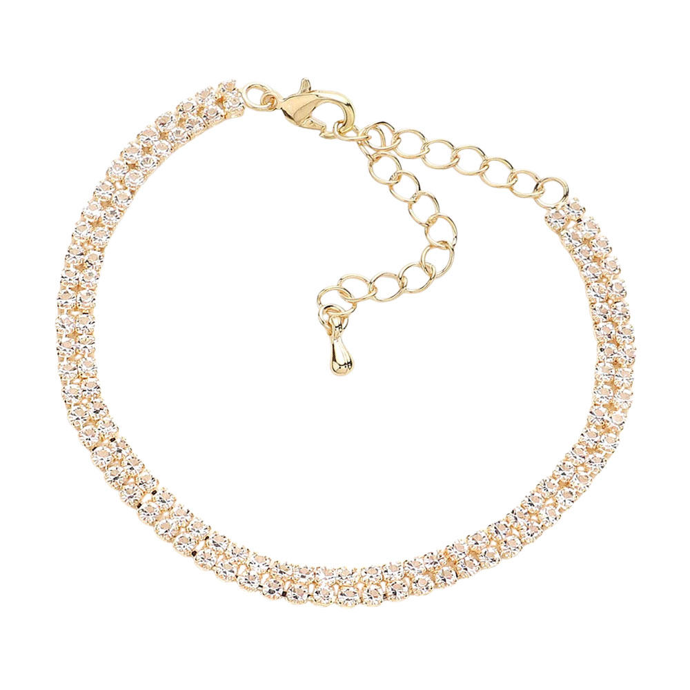 • This double row crystal chain bracelet radiates classic elegance and sparkle. Designed for a refined, polished look, it enhances any outfit with shimmering detail. Perfect for weddings, parties, or everyday sophistication, this bracelet is a timeless piece for effortless glamour.