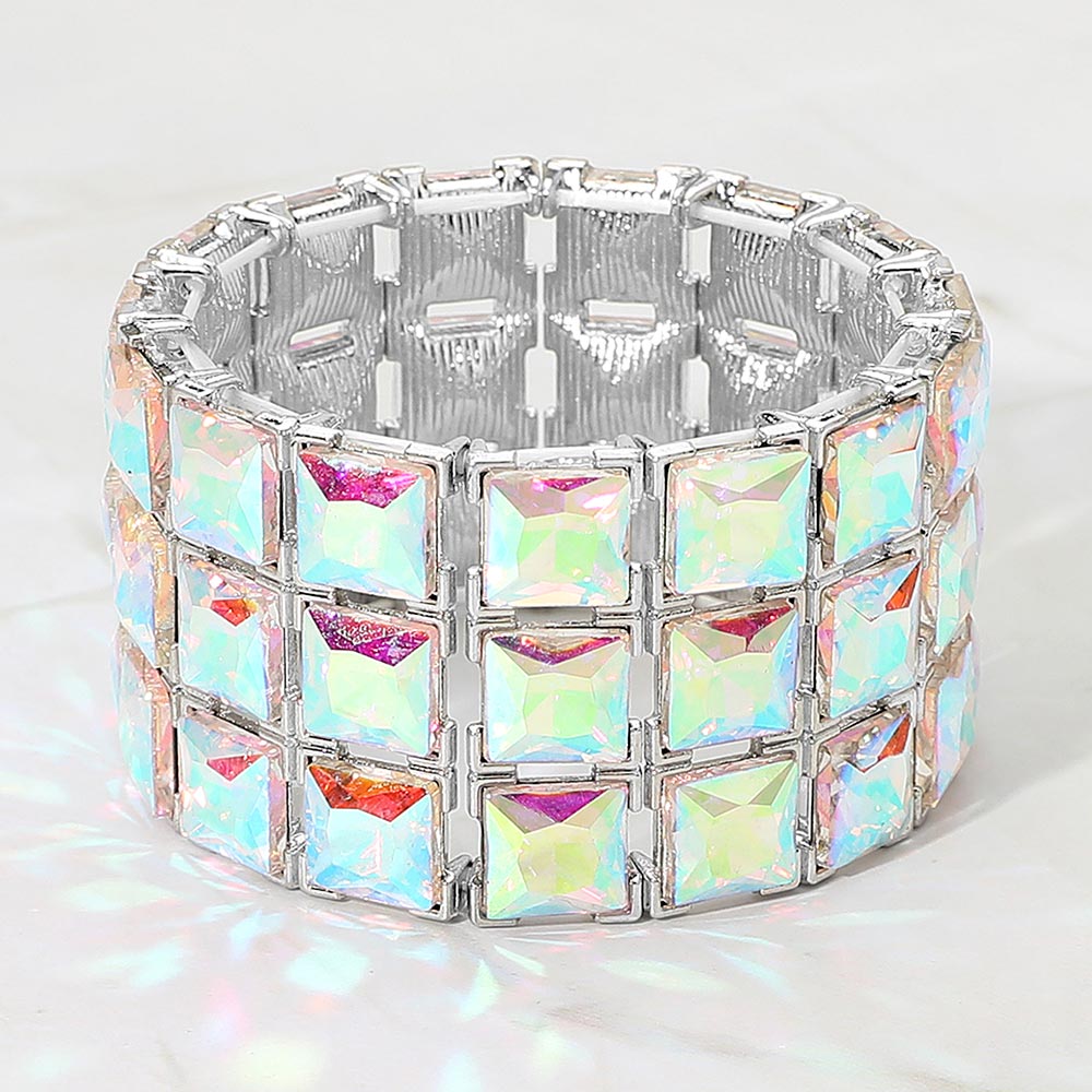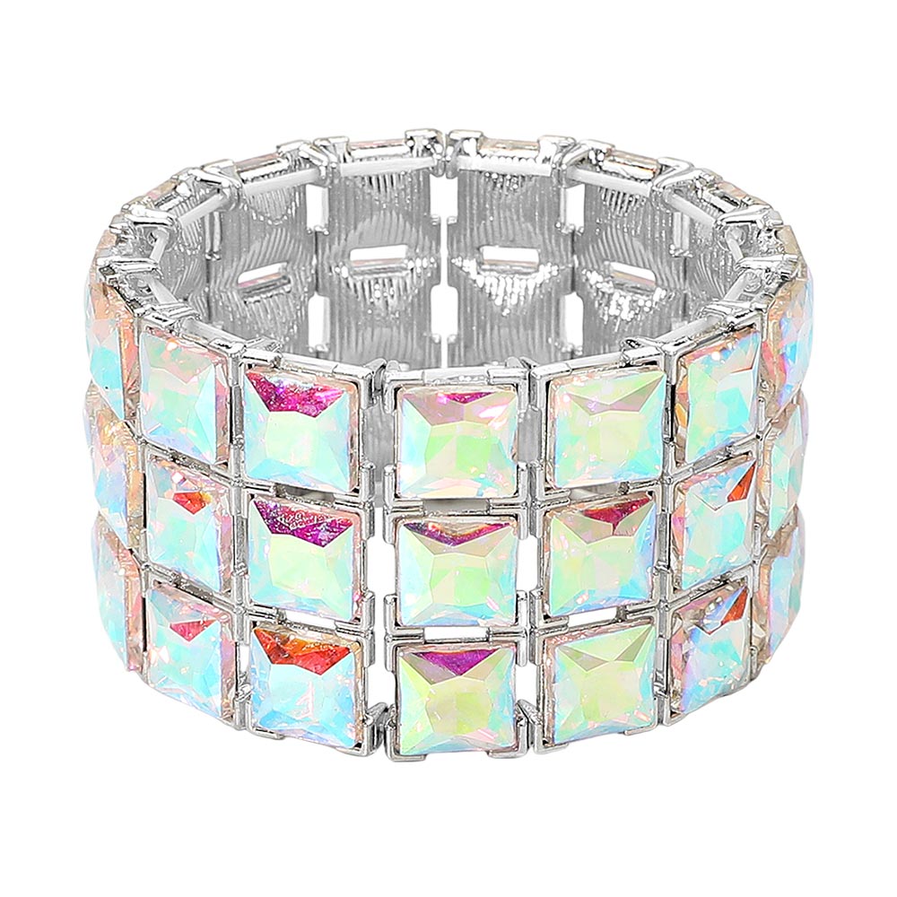 3-Rows Square Stone Stretch Evening Bracelet 3-Rows Square Stone Stretch Evening Bracelet