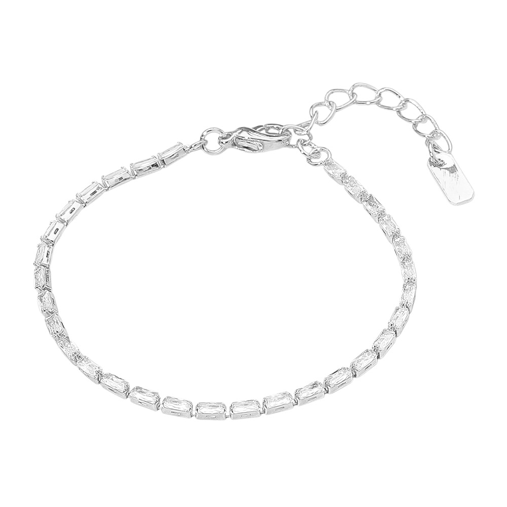 • Sleek tennis bracelet featuring a row of sparkling baguette-cut crystals and an adjustable extender for a tailored fit. A refined and versatile accessory perfect for daily wear, special events, and gifting, adding a touch of understated elegance to any look.