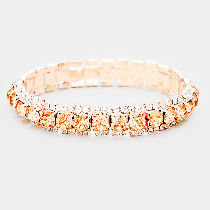 Three-row Teardrop Gem Beaded Stretch Evening Bracelet