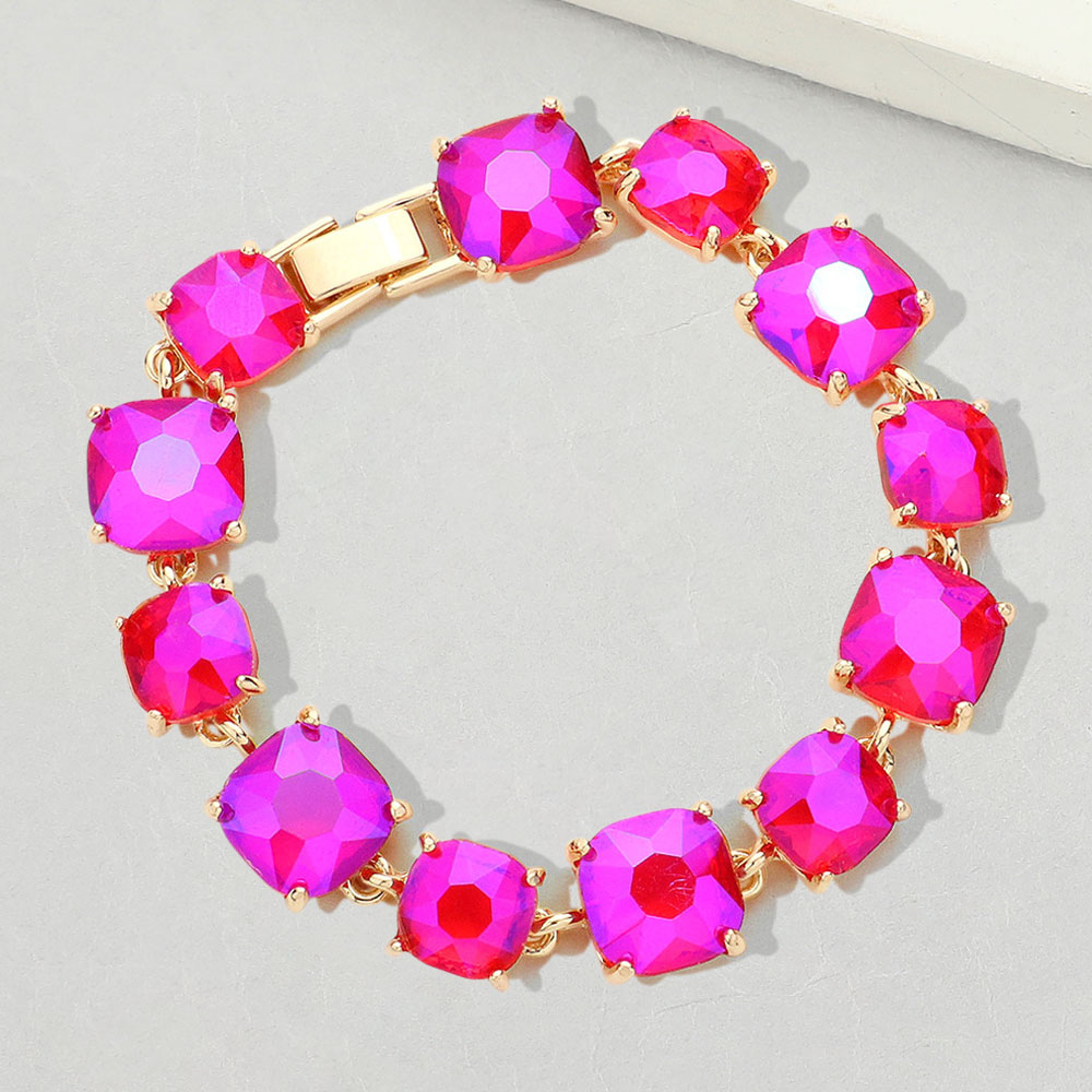• Elegant bracelet featuring sparkling square-cut crystals with a vivid, reflective finish. Ideal for parties, weddings, or adding brilliance to formal looks. A radiant accessory that commands attention.