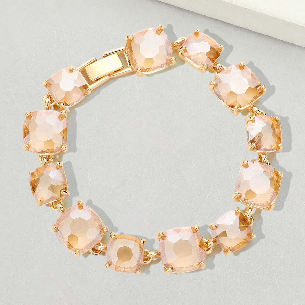 • Elegant bracelet featuring sparkling square-cut crystals with a vivid, reflective finish. Ideal for parties, weddings, or adding brilliance to formal looks. A radiant accessory that commands attention.