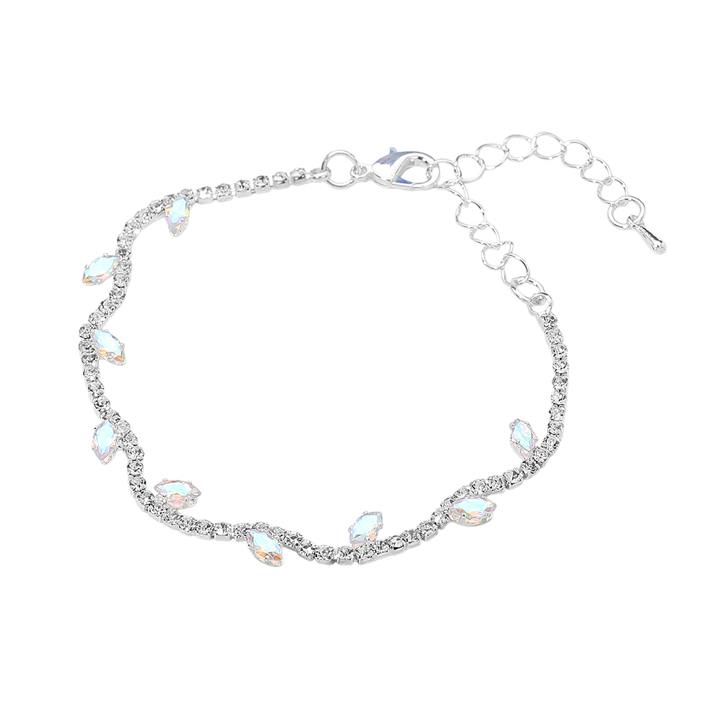 • Graceful tennis bracelet featuring marquise-shaped cluster vine accents along a slim, curved cz band. The delicate structure and adjustable clasp create a refined silhouette that complements any elegant or formal style, adding subtle brilliance to wristwear collections.
